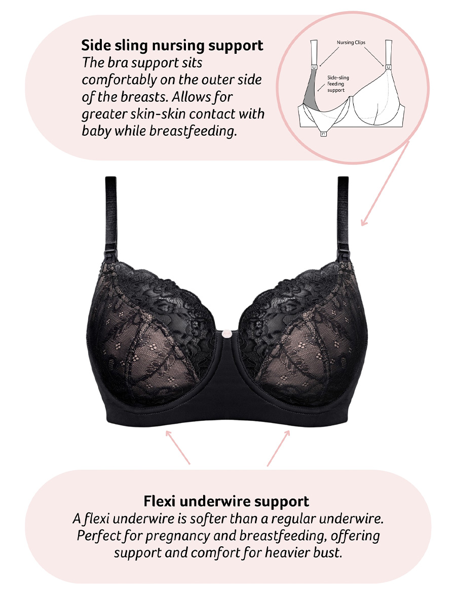 Imetysliivit Temptation on ylellisen näköinen ja samanaikaisesti käytännöllisen toimiva liivi raskaus- ja imetysaikaan. Muotoiltu, joustavalla Flexiwire -kaarituella tuettu kuppi tuntuu mukavalta ja antaa hyvin tukea raskaillekin rinnoille.