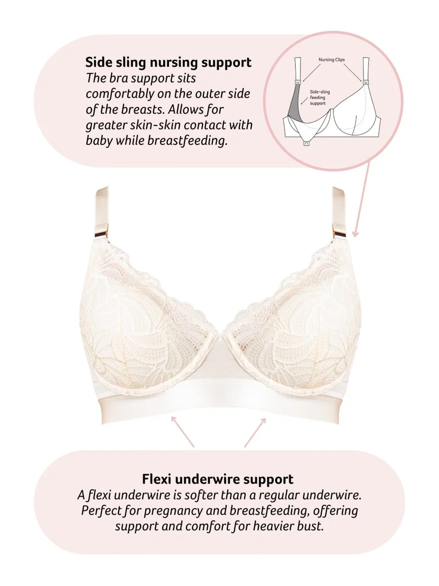 - yhdellä kädellä avattavat imetysklipsit ja sivulta kokonaan aukeava kuppi mahdollistaa laajan ihokontaktin vauvan kanssa