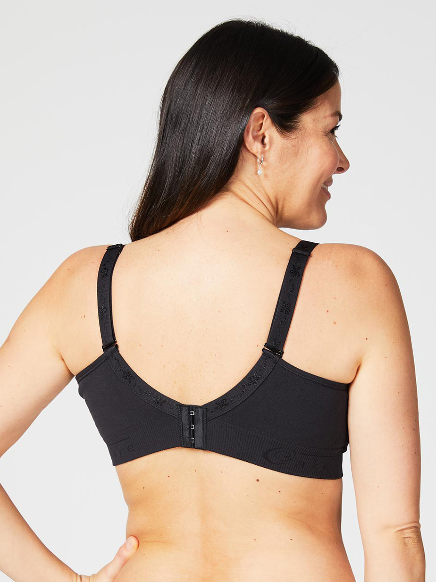 Imetysliivit Rock Candy Musta on tiiviistä, mutta erittäin pehmeästä materiaalista neulottu saumaton imetysliivi, joka tarjoaa mukavuutta, tukea ja toiminnallisuutta. Liiveissä on V-mallinen pääntie ja säädettävä ympärys.