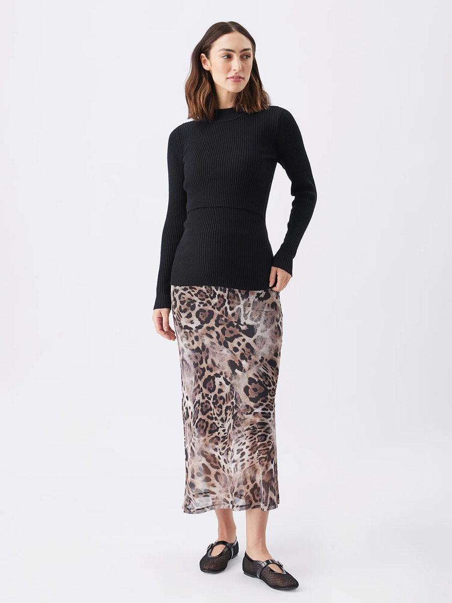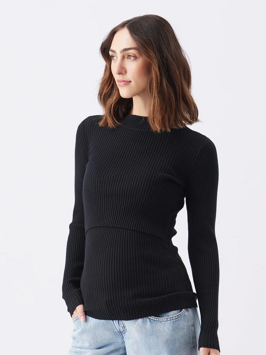 Imetysneule Lift Up nursing on vartaloa myötäilevä pehmeä neule ribbikankaasta, joka joustaa ja korostaa kauniisti kasvavaa vatsaa. Neuleessa on pyöreä pääntie korotetulla kauluksella ja pitkät, ihoamyötäilevät hihat.