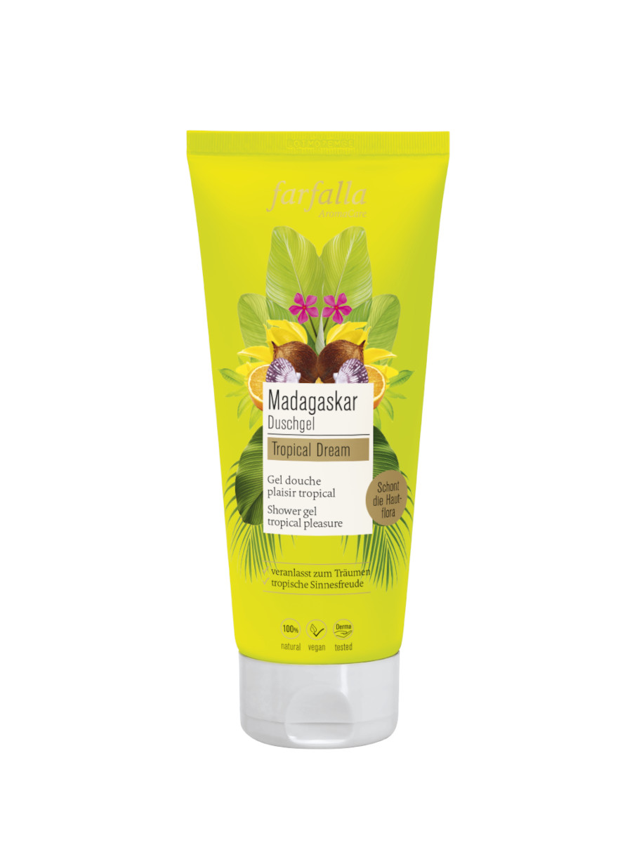 Sametinpehmeästi vaahtoavan suihkugeelin kasvipohjaiset tensidit pesevät ihon äärimmäisen hellävaraisesti. Ihollesi jää ihana silkinpehmeys ja lempeä tuulahdus tropiikin taikaa!