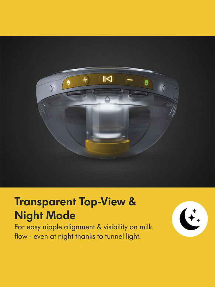 - Läpinäkyvä yläosa ja yötila: Helpottaa nännin kohdistamista ja maidon virtauksen seurantaa – myös yöllä sisäänrakennetun valon ansiosta.