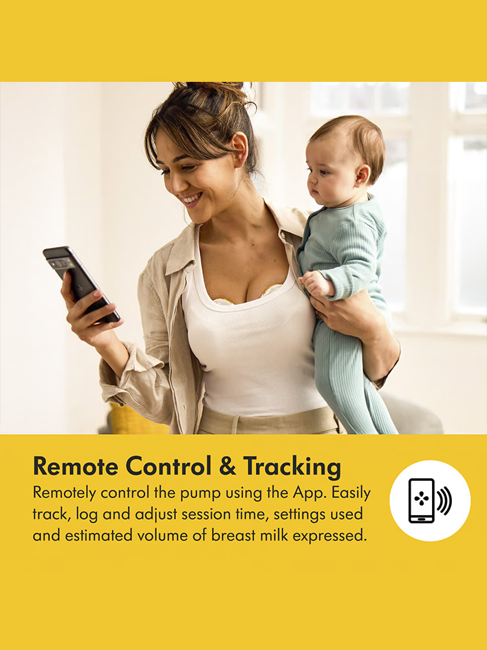 - Etäohjaus ja seuranta sovelluksella: Ohjaa pumppua kätevästi Medela Family™ Pump Coltron App -sovelluksen kautta. Seuraa ja kirjaa pumppausajan, asetukset ja tuotetun maidon määrän.