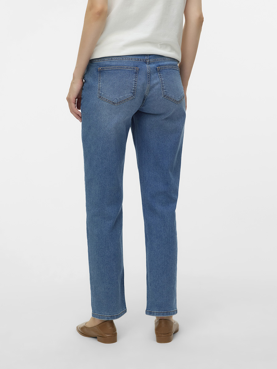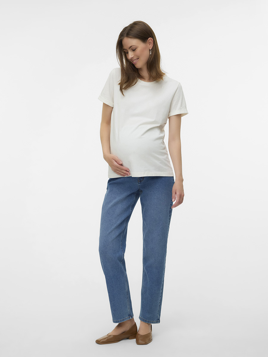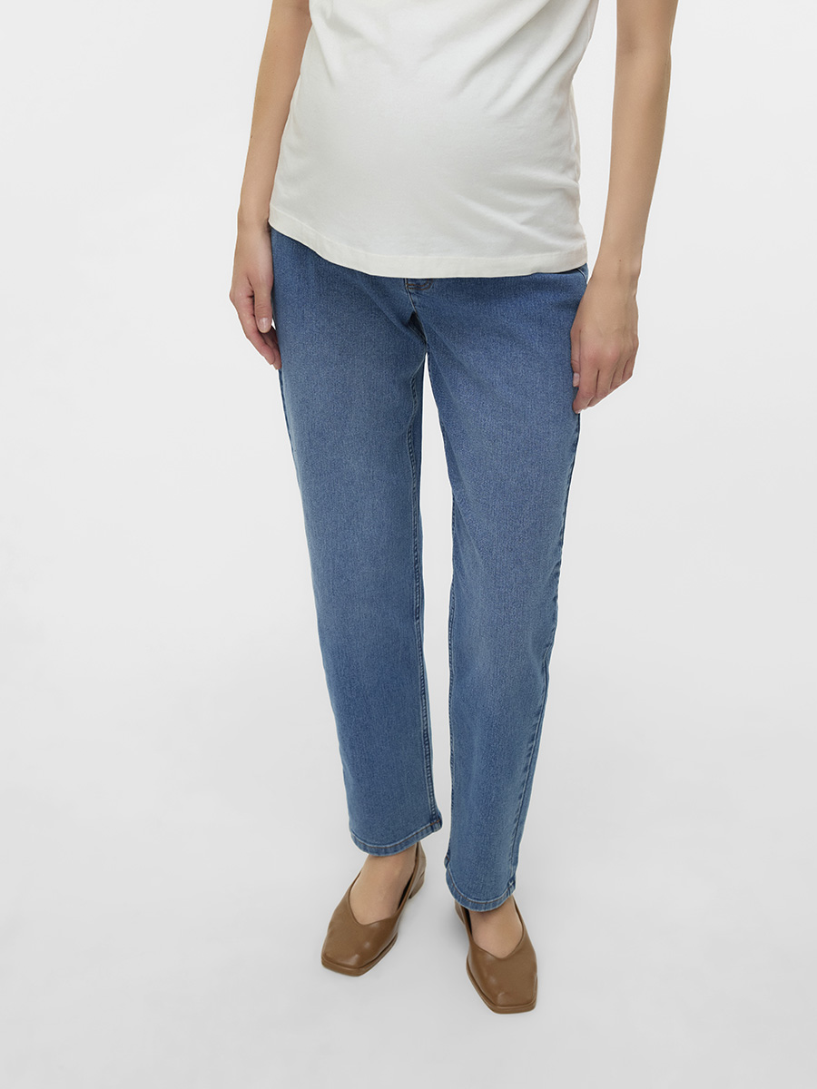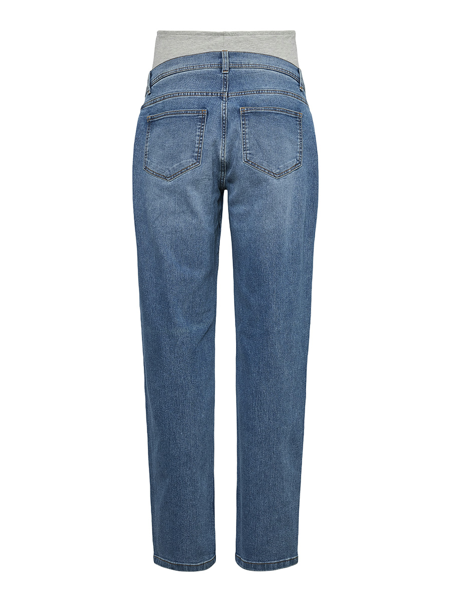 Äitiysfarkut Mexico Straight ovat suoralahkeiset, nilkkapituiset äitiysfarkut joustavalla trikooisella vyötäisosalla. Farkuissa on keskisininen pesu, etu- sekä takataskut ja nappi edessä.