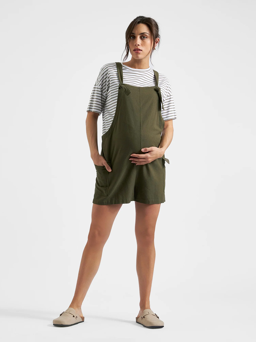 Äitiyshaalari Terry Linen Playsuit shortsihaalarissa on rento ja mukava leikkaus boheemilla ja leikkisällä ilmeellä! Pellavasekoite hengittää ja tuntuu miellyttävältä ja olkainten pituuden voi säätää itselleen sopivaksi. Haalarissa ei varmasti ole kiristäviä ja puristavia saumoja!