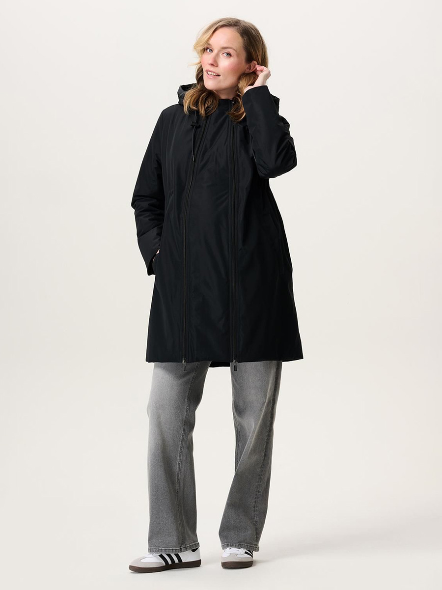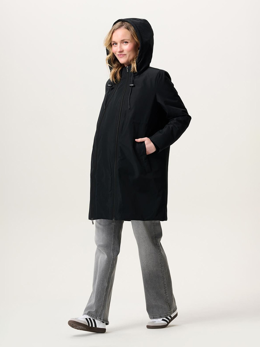 Äitiys- ja kantotakki Juva Jacket 3-way Black on takki jokaiseen äitiyden vaiheeseen ja myös sen jälkeen. Takki muuntautuu niin odotusajan takiksi, kantotakiksi kuin tavalliseksi takiksi.