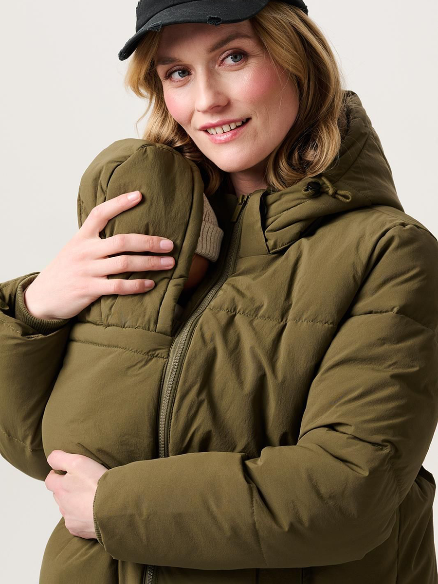 Äitiys- ja kantotakki Teavu 3-way Dark Olive on takki jokaiseen äitiyden vaiheeseen ja myös sen jälkeen. Takki muuntautuu niin odotusajan takiksi, kantotakiksi kuin tavalliseksi takiksi. Materiaali on vettähylkivää sekä tuulenpitävää, joten pienet talviset sateet eivät haittaa!