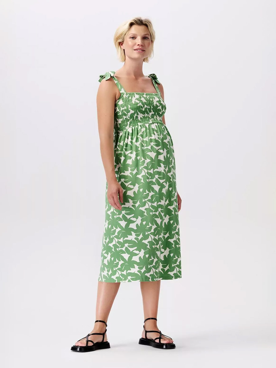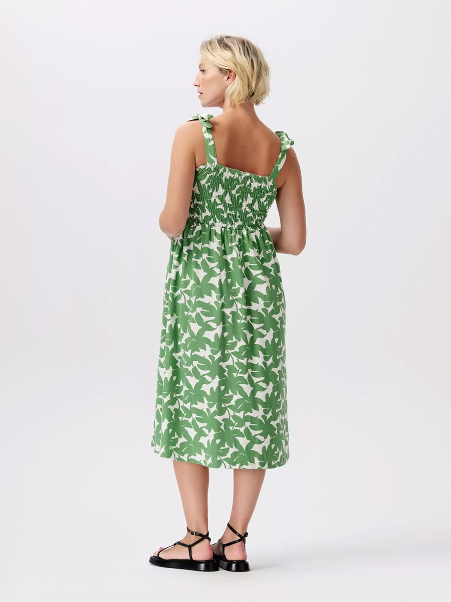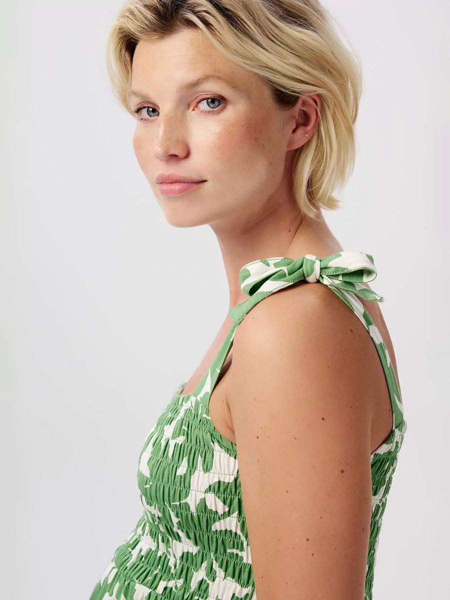 Äitiysmekko Nia Dress Peppermint Big Flower leikkisällä printtikuosilla on kesän raikas uutuus! Mekossa on smokkirypytetty yläosa, solmittavat, leveät kangasolkaimet ja vatsan yläpuolelta alkava väljä helma.