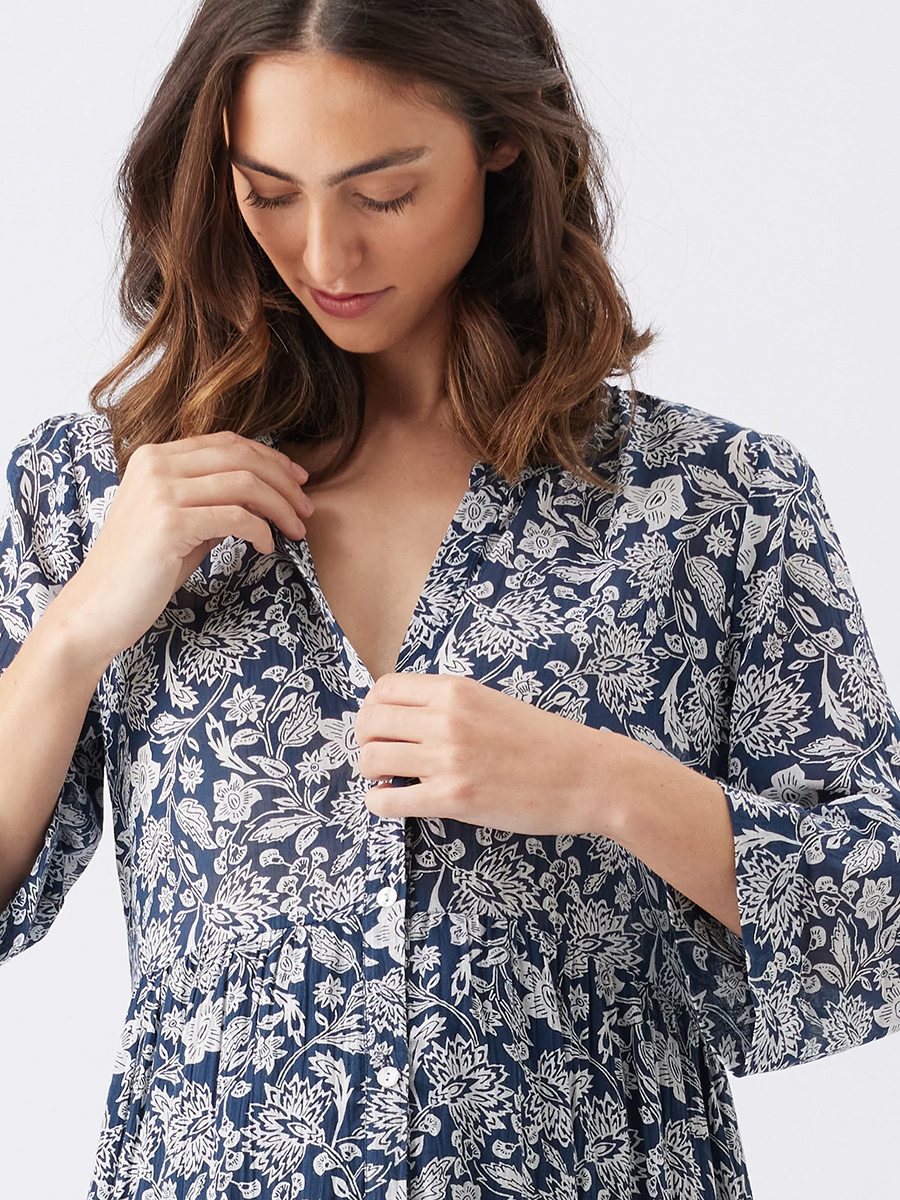 Mekossa on kauniit 3/4 osa hihat kääräistynä. V-mallinen pääntie ja napitettava etuosa tarjoavat niin tyyliä kuin helppoja imetyshetkiä. Mekko sopii raskausaikaan, imetykseen kuin ennen ja jälkeen! Yhdistä rennosti sandaalien kanssa tai nauti juhlissa, Ezra äitiysmekko edustaa äitiysmuotia parhaimmillaan.