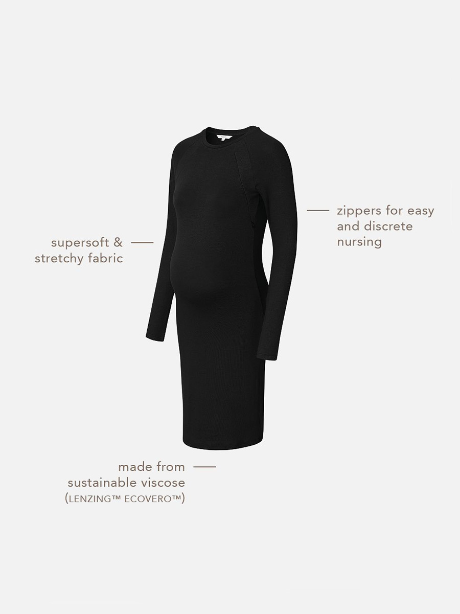 Imetysmekko Zane Ultra Soft Black on valmistettu ultrapehmeästä materiaalista. Käytännöllinen mekko mukautuu niin raskausajallesi kuin imetysmekoksi vauvan synnyttyä. Mekossa on huomaamattomat vetoketjut rintojen sivuilla, joiden kautta imetät helposti missä vain.