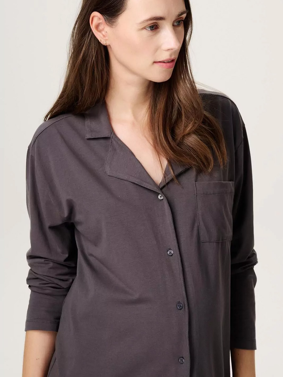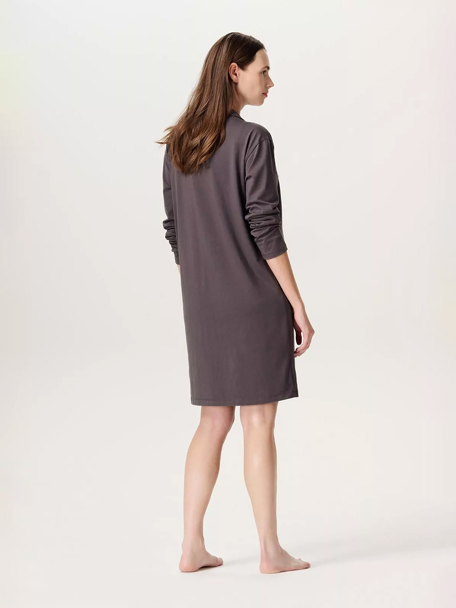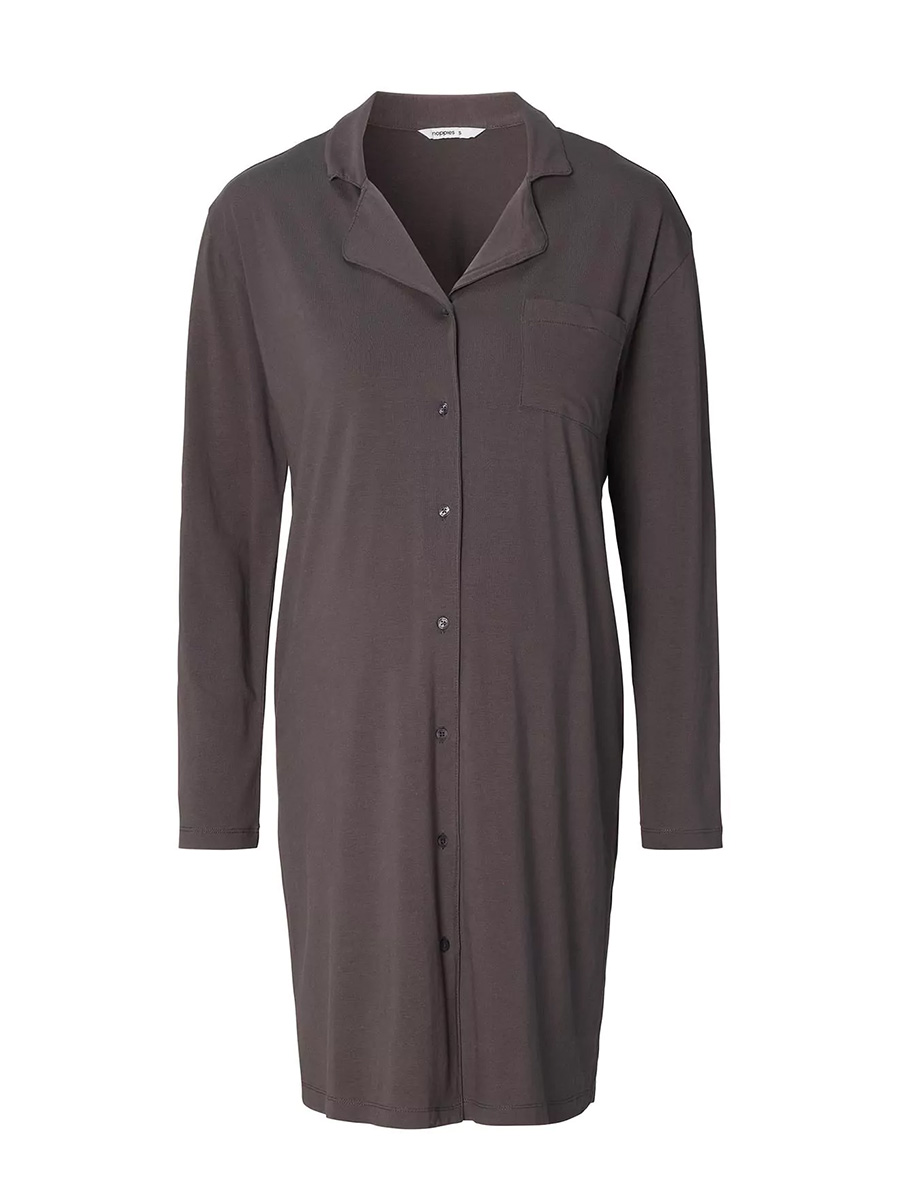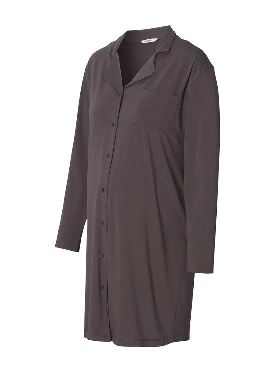 Imetysyöpaita Maiko jersey Forged Iron on ihanan pehmeä yöpaita, jonka napitus koko pituudelta tekee yöllisestä imettämisestä helppoa. Väljän joustavan mallin ansiosta paita sopii sekä odotusaikaan että imetykseen. Etuosan avaaminen mahdollistaa vauvan sujauttamisen paidan sisään helposti ihokontaktiin.
