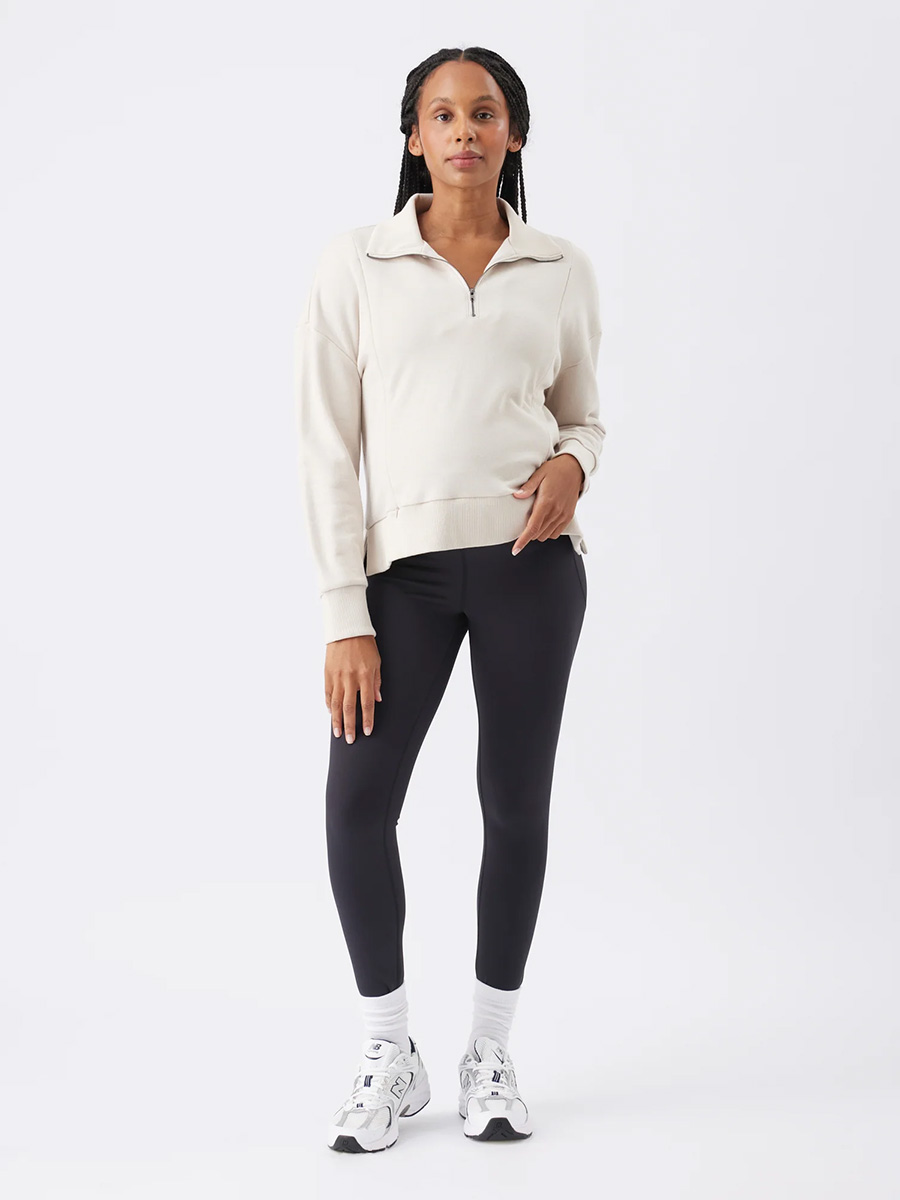 Äitiysleggings Tempo Black on suunniteltu käytettäväksi koko raskauden ajan ja sen jälkeen. Tempo-leggingsit on valmistettu pehmeästä, kosteutta siirtävästä ja neljään suuntaan joustavasta neuloksesta, jossa on nyppyyntymistä ehkäiseviä ja kevyesti kompressiivisia ominaisuuksia.