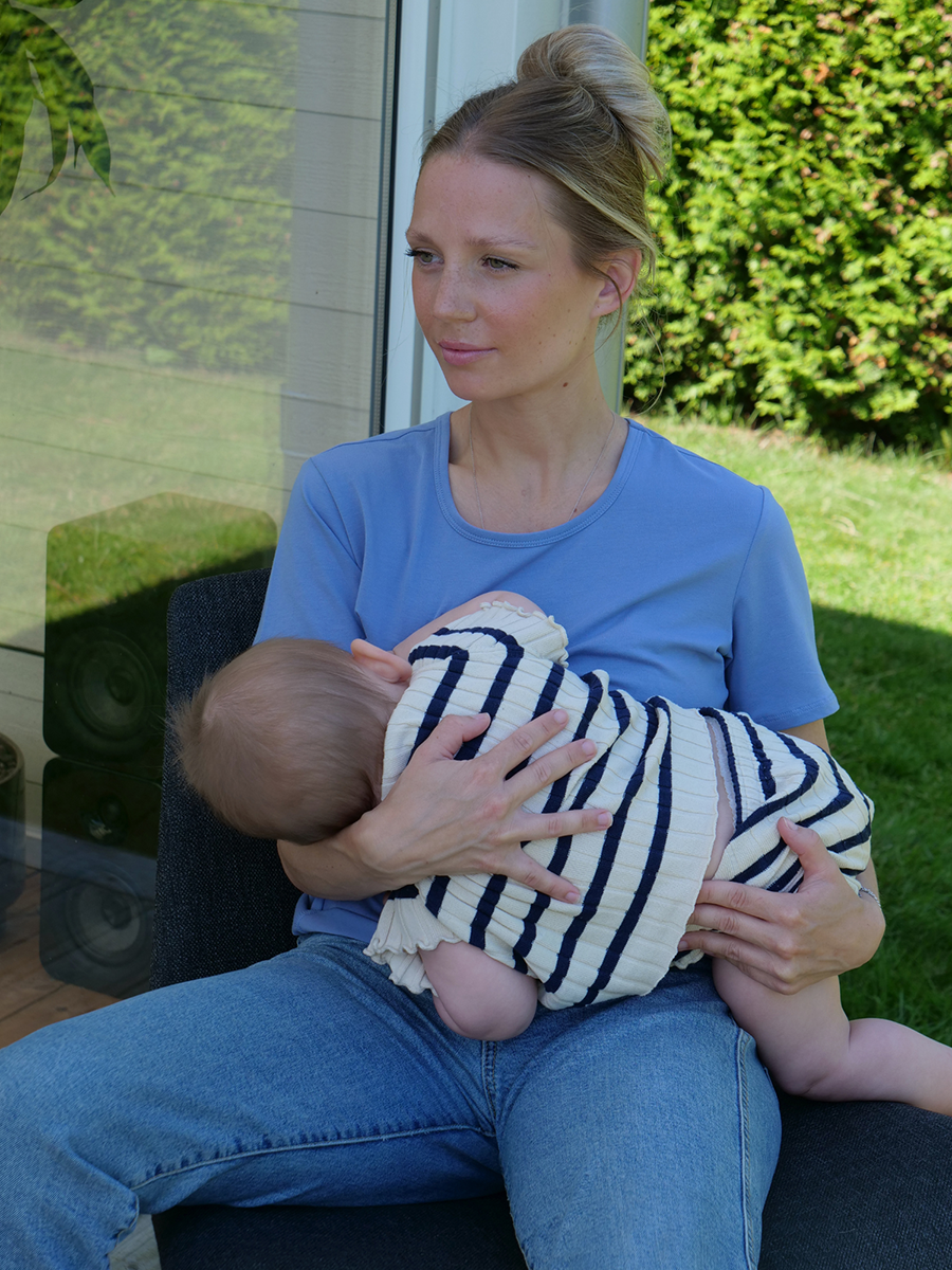 Imetys T-paita Essential on raskaus- ja odotusajan klassinen ja suosittu vaate. Käytännöllinen ja kaunis imetyspaita on valmistettu pehmeästä ja joustavasta luomupuuvillasta.