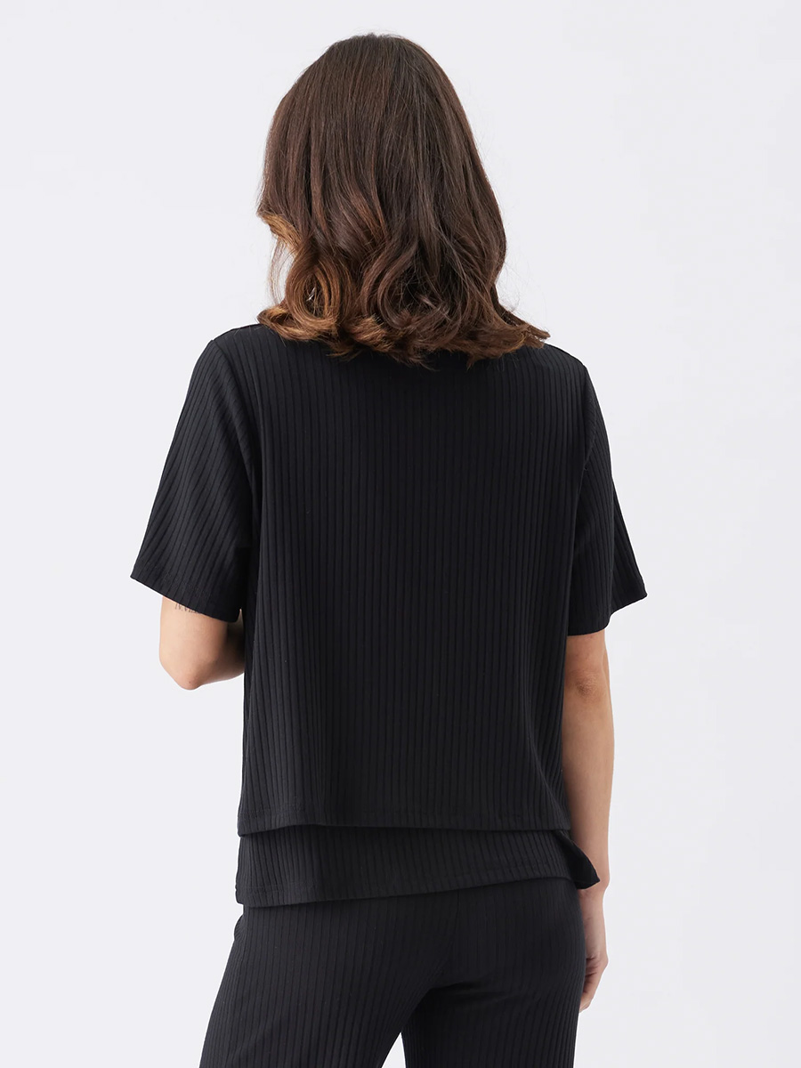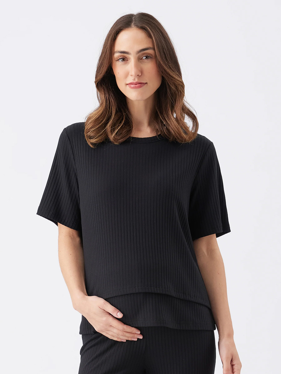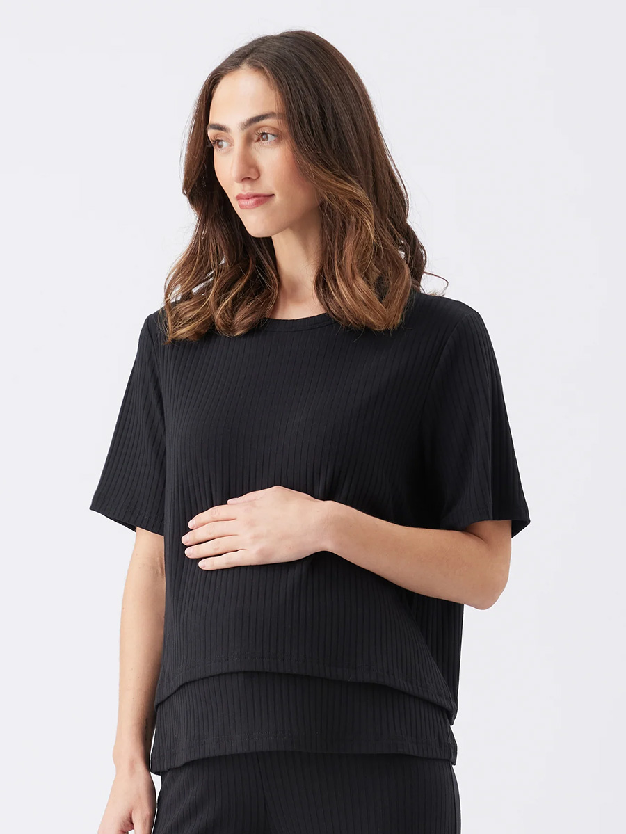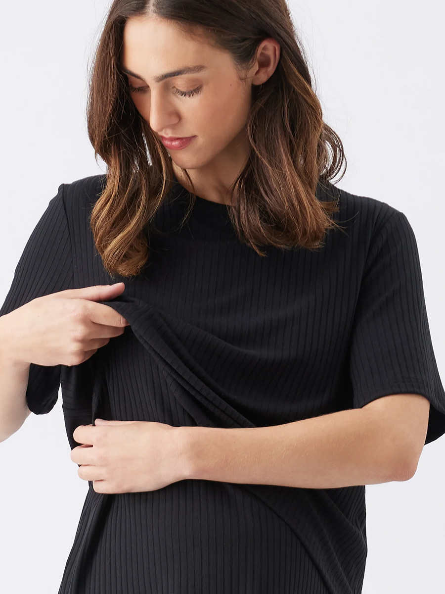 Imetyspaita Mike Rib Black tuo mukavuutta ja varmuutta imettäville äideille! Paidassa on rento leikkaus, pyöreä pääntie ja fiksu kaksinkertainen kangas, jonka alla on helpot imetyslaskokset.