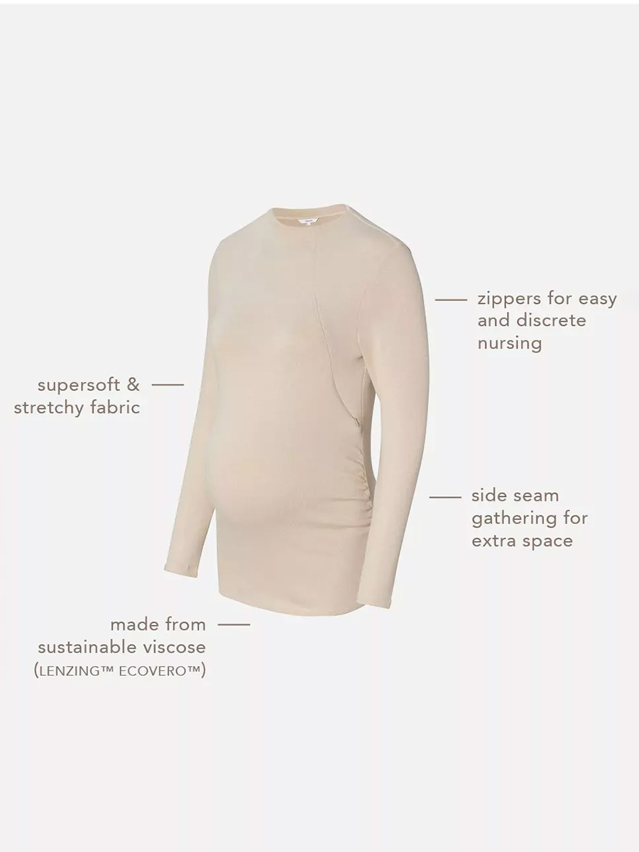 Imetyspaita Rosa Ultra Soft Light Sand tuo optimaalista mukavuutta pehmeällä materiaalilla, jota rakastat koko päivän! Pitkähihainen tyköistuva paita sopii niin raskausajalle kuin imetykseen.