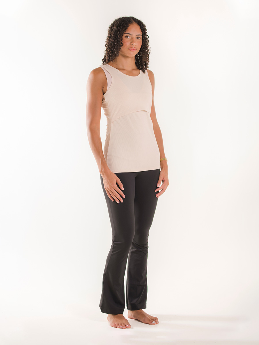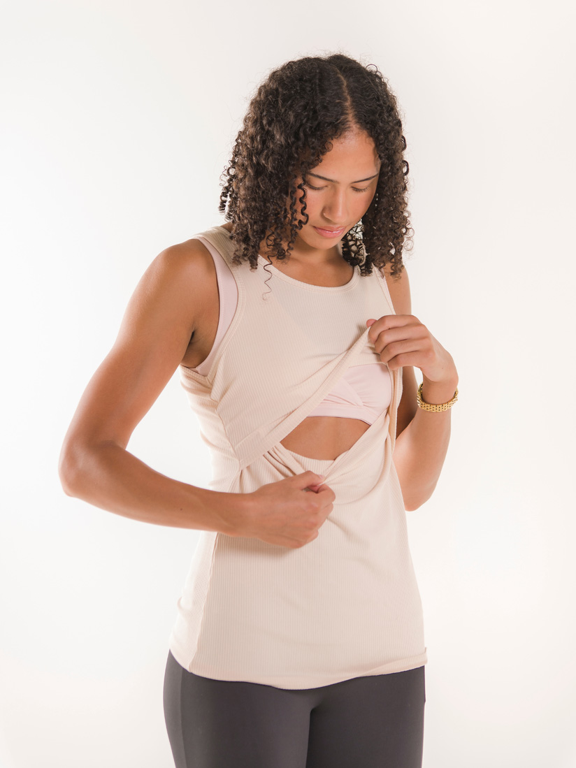 Imetystoppi Ribbed Nursing Tank Top Soft Beige on pehmeää ja joustavaa luomupuuvillaa ja ihanteellinen perustoppi odottavan, imettävän ja pumppaavan äidin vaatekaappiin! Malliltaan tyköistuva ribbitoppi joustaa ja mahdollistaa sekä raskausvatsan kasvamisen että helpot imetyshetket.