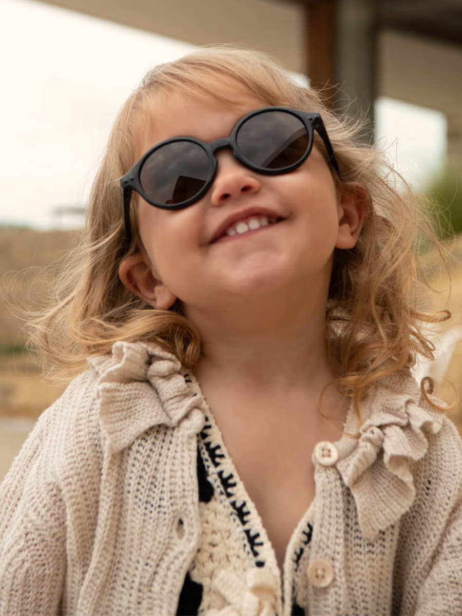 Huom. Pienet lapset on aina hyvä pitää pääosin auringolta suojassa. Hyvä aurinkohattu suojaa myös lapsen silmiä auringolta. Jos lapsi kuitenkin viettää enemmän aikaa kirkkaassa auringonvalossa, tai esimerkiksi veden äärellä tai lumisilla hangilla, silmät on hyvä suojata laadukkailla aurinkolaseilla. Lapsen silmien mykiö on kirkkaampi, kuin aikuisen, ja siksi se läpäisee vahingollista UV-säteilyä enemmän, kuin aikuisen silmät.