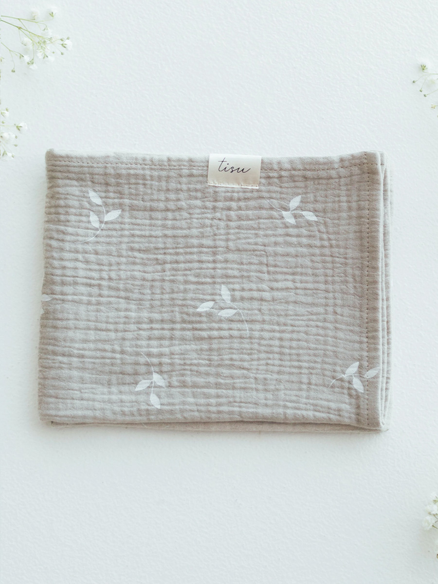 Harso Beige Leaves on suomalaisen TISU:n kaunis ja pehmeä, Tallinnassa käsityönä valmistettu harso vauvalle.