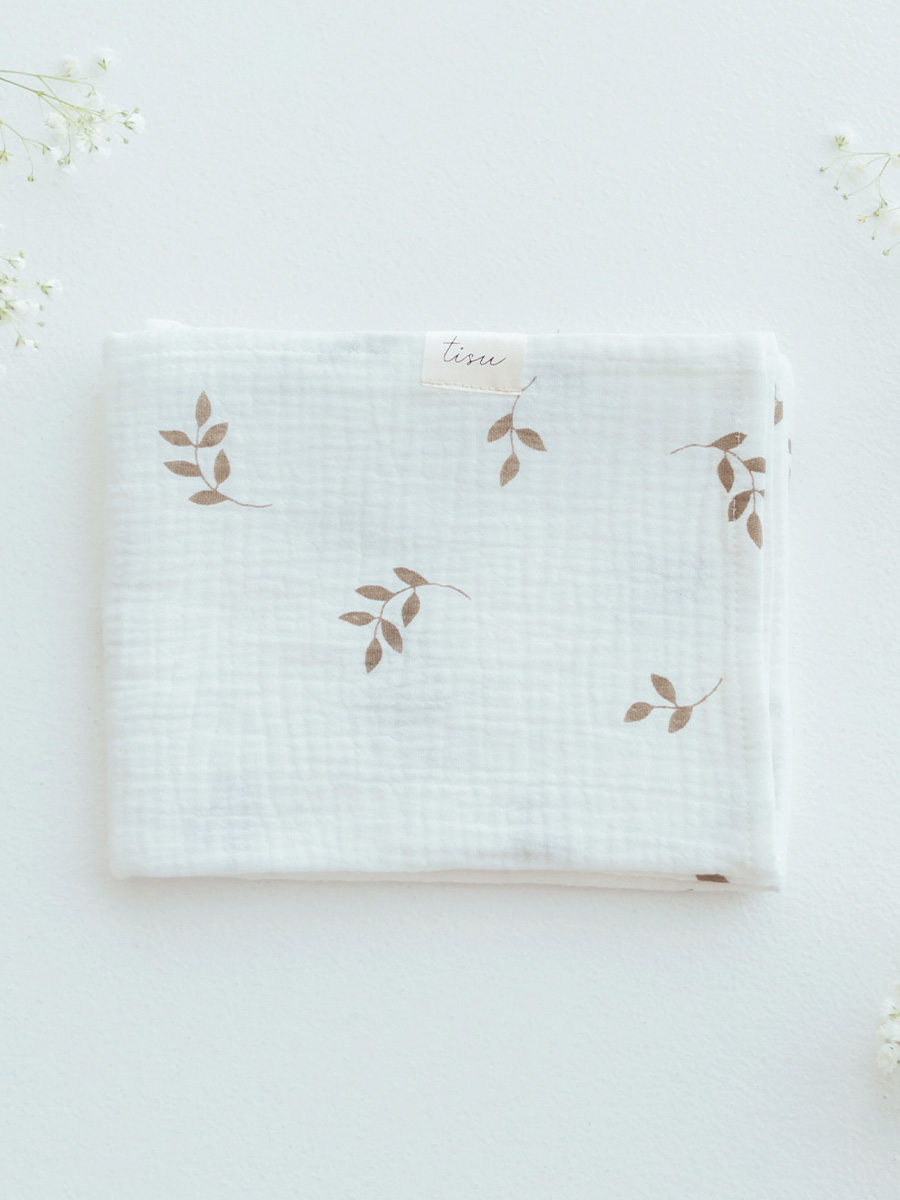 Harso Cream Leaves on suomalaisen TISU:n kaunis ja pehmeä, Tallinnassa käsityönä valmistettu harso vauvalle.