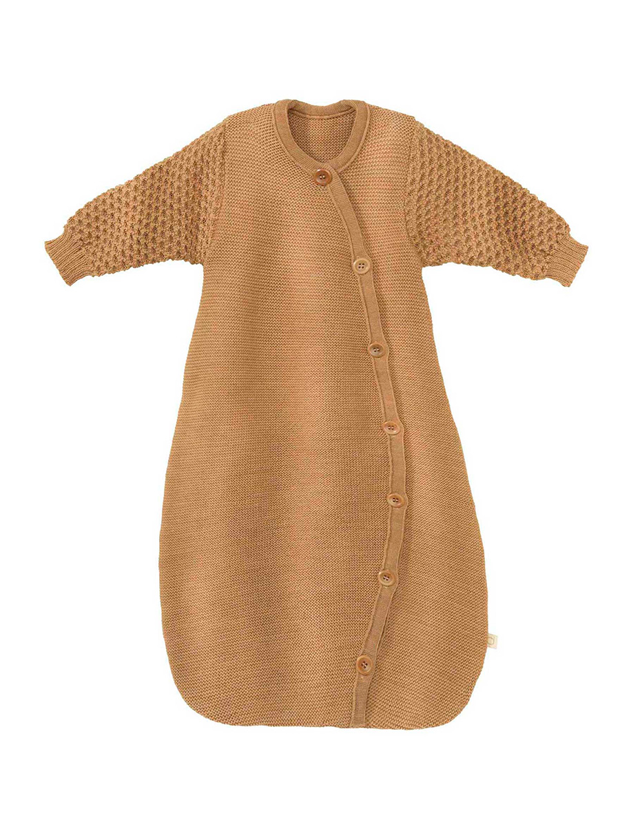 Vauvan unipussi Long sleeve Sleeping bag on pehmeä ja lämmin, merinovillainen unipussi joustavan pehmeästä neuloksesta. Unipussissa on pitkät hihat ja se on kuin turvallinen makuupussi, joka pitää vauvan tasaisen lämpimänä koko yön, mutta vauva ei saa sitä potkittua pois. Unipussin pukeminen voi parhaillaan luoda vauvalle tutun rituaalin nukkumiseen menoon.