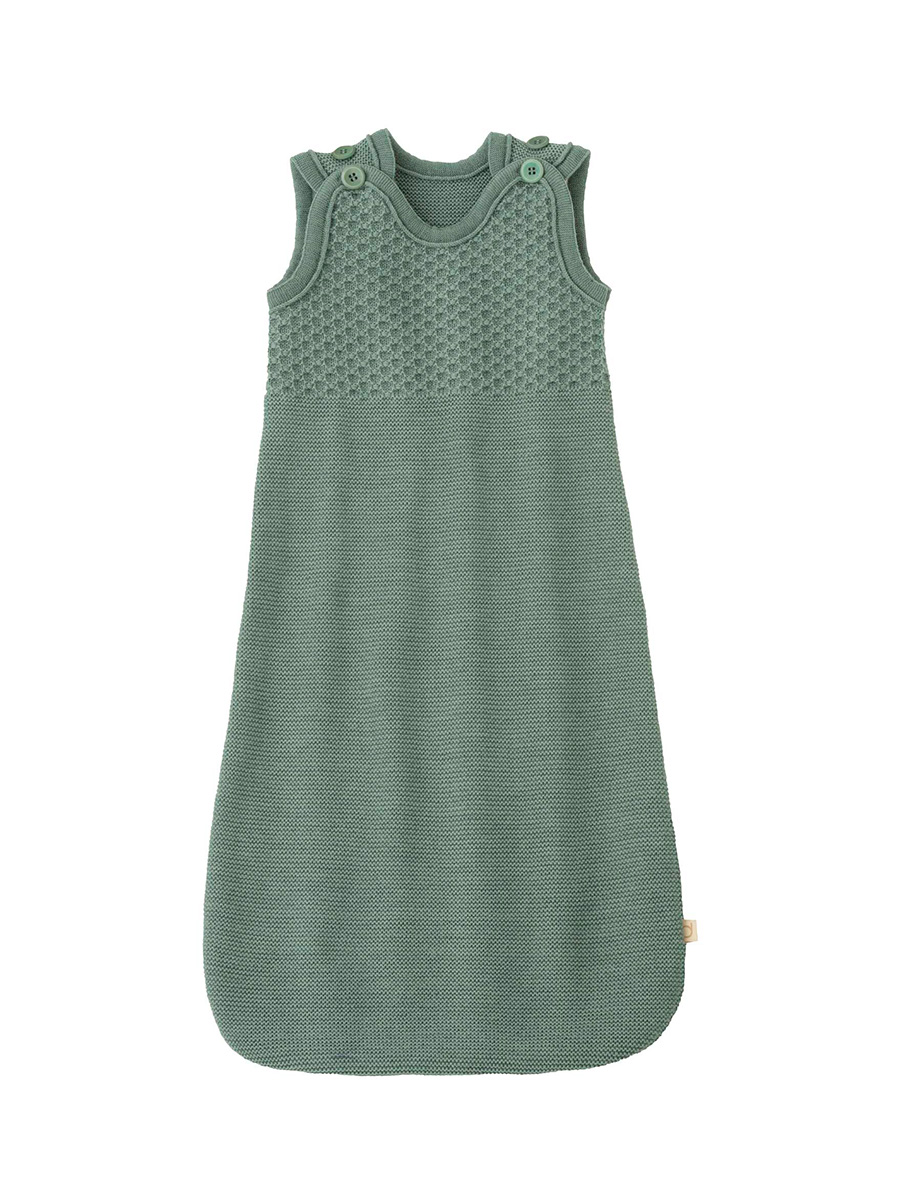 Vauvan unipussi Sleeveless Sleeping bag on pehmeä ja lämmin, merinovillainen unipussi joustavan pehmeästä neuloksesta. Hihaton unipussi on kuin turvallinen peitto, joka pitää vauvan tasaisen lämpimänä koko yön, mutta vauva ei saa sitä potkittua pois. Unipussin pukeminen voi parhaillaan luoda vauvalle tutun rituaalin nukkumiseen menoon.