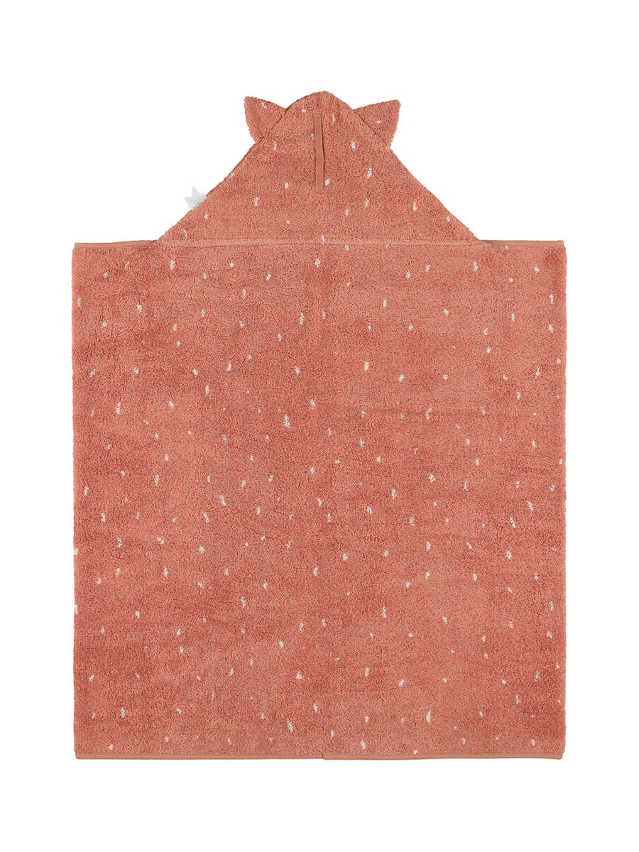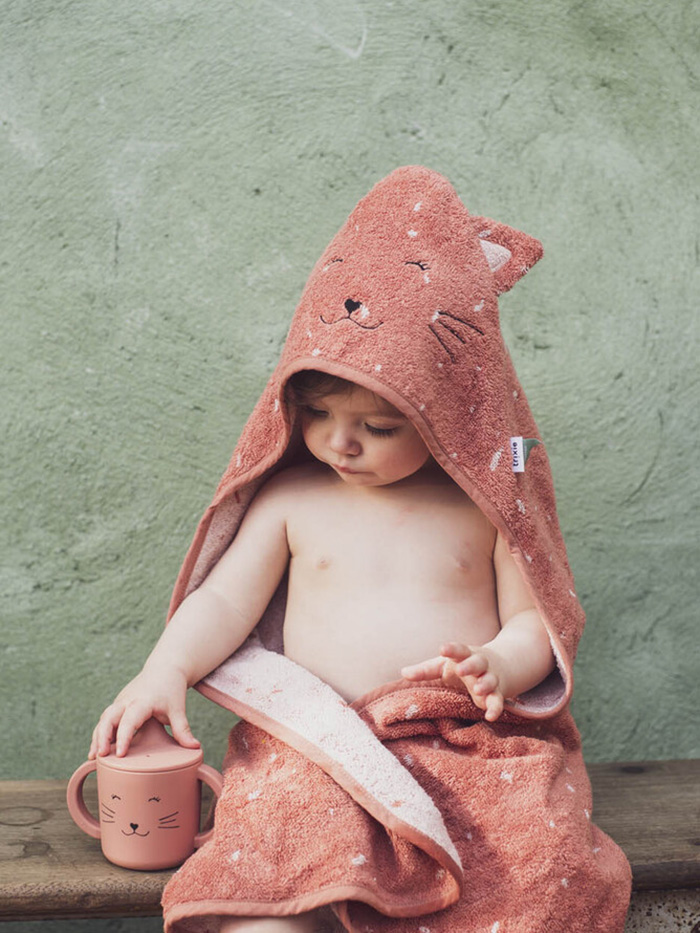Huppupyyhe Mrs Cat on lapsille sopivan kokoinen pehmeä froteepyyhe, jossa on käytevä huppu! Hupun suloinen eläinhahmo ilahduttaa lapsia ja tekee niin kylpyhetkistä kuin rantaleikeistä hauskempia. Huppu pysyy lapsen päässä ja auttaa pyyhettä pysymään paikoillaan sekä pitämään lapsen lämpimänä.