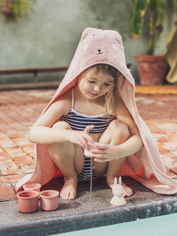 Huppupyyhe Mrs. Rabbit on lapsille sopivan kokoinen pehmeä froteepyyhe, jossa on käytevä huppu! Hupun suloinen eläinhahmo ilahduttaa lapsia ja tekee niin kylpyhetkistä kuin rantaleikeistä hauskempia. Huppu pysyy lapsen päässä ja auttaa pyyhettä pysymään paikoillaan sekä pitämään lapsen lämpimänä.
