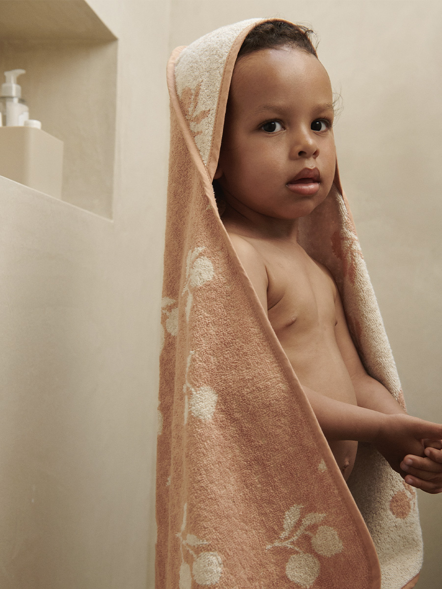 Vauvan huppupyyhe Alba on rakastettu huppupyyhe vastasyntyneille sopivassa koossa. Valmistettu luomupuuvillasta, jonka pehmeyteen voit kääriä lapsesi kylvyn jälkeen. Kulmassa suloinen huppu.
