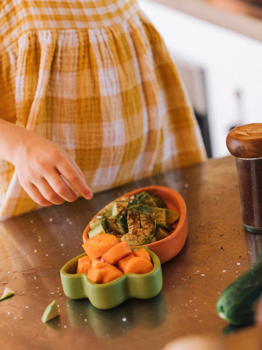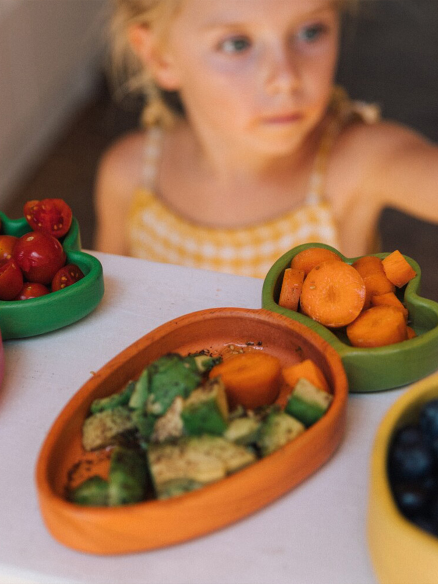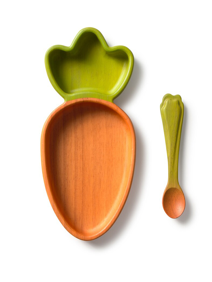 Oli&Carol lautanen ja -lusikka setti sisältää ihanan lautasen ja lusikan, jotka on käsintehty Hevea-puusta. Hauska ja värikäs muotoilu on saanut inspiraationsa kasvisten maalimasta. Puiset astiat ovat turvallinen, muoviton ja kestävä valinta lapsille ja antavat toisen elämän puille, jotka aikoinaan tarjosivat kumia Oli&Carol-leluille.