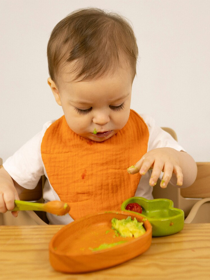 Astiat on käsinmaalattu luonnonpigmenteillä ja jokainen kappale on ainutlaatuisesti käsintehty, joten pienet väri- ja muotovaihtelut ovat normaaleja. Pienten käsien on kevyt ja helppo tarttua lusikkaan ja erittäin sileä pintakäsittely on hellävarainen vauvan ikenille ja hampaille.