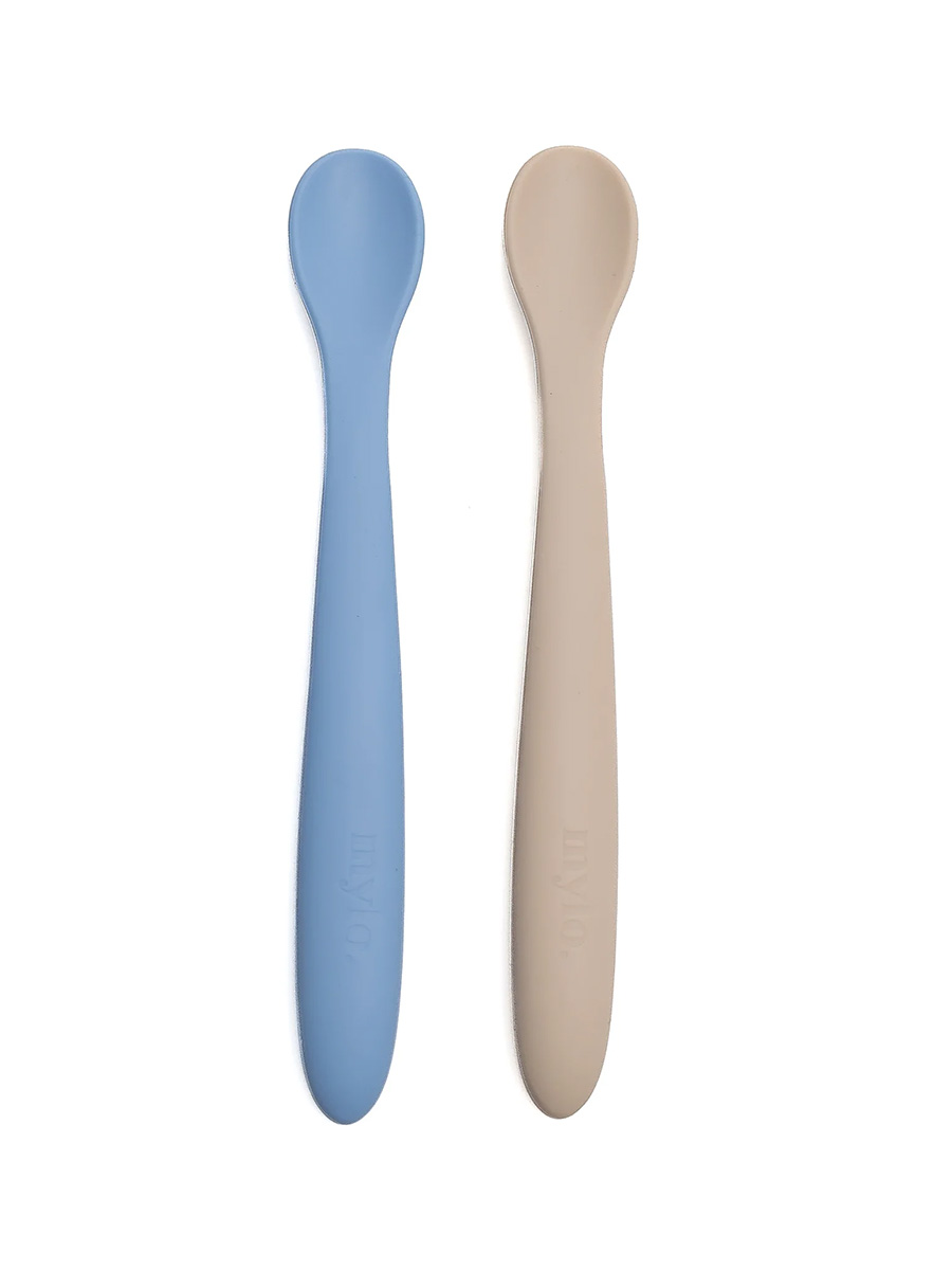 Ensilusikat silikoni Serenity & Silver desert ovat pitkävartisia silikonilusikoita, jotka yltävät ruokapurkin pohjalle asti ja ovat ihanan helliä lapsen ikenille. Varren sisällä on ruostumattomasta metallista tehty vahvike, joten lusikan varren kaarevuutta voi itse säädellä.
