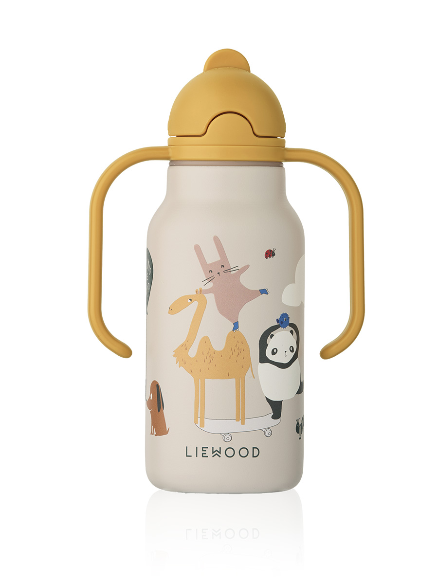 Juomapullo Kimmie 250ml pehmeällä silikonipillillä ja kahvoilla, sopii ihanteellisesti vauvoille ja taaperoille.