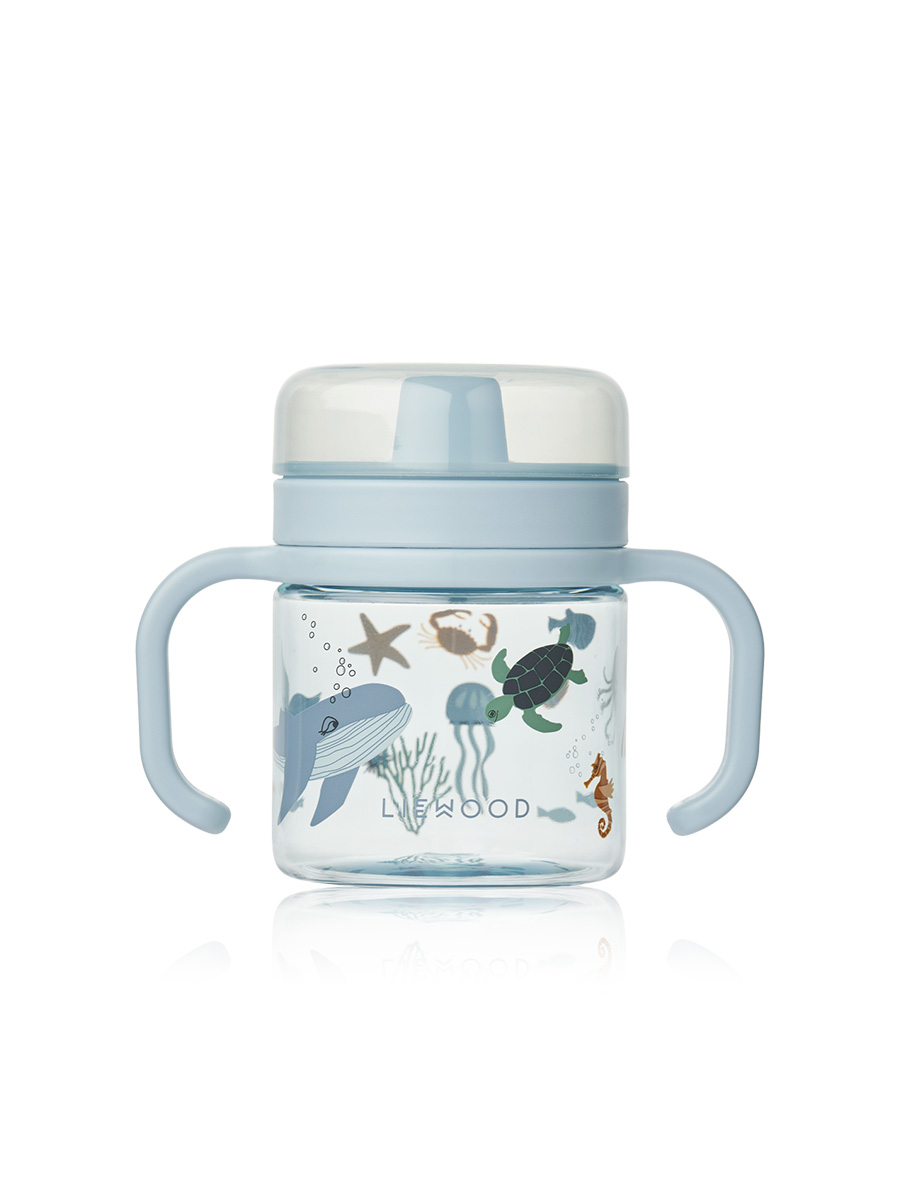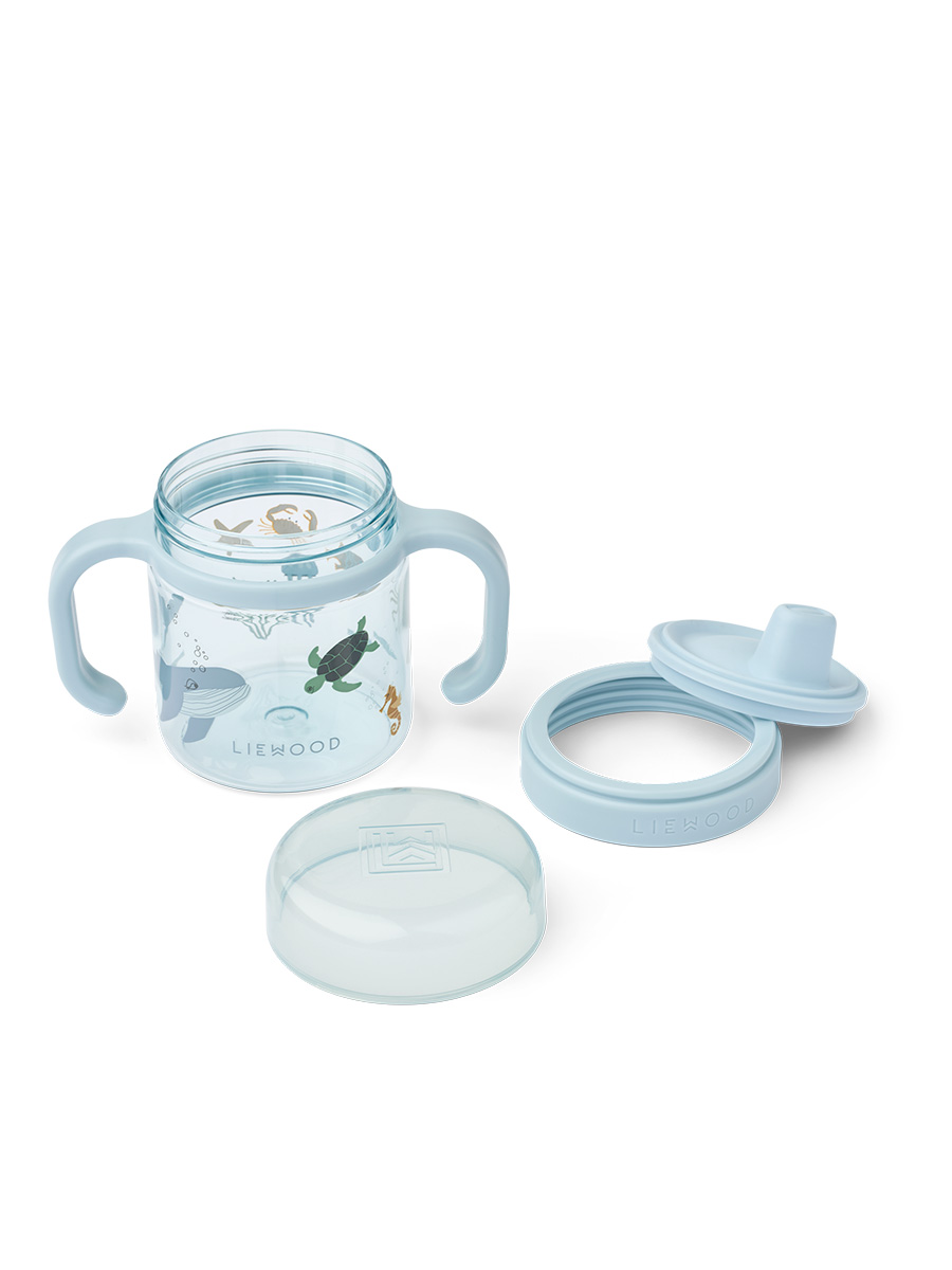 Mukissa on kahvat sekä silkkisen pehmeä, silikonista tehty nokkaosa, josta lapsen on mukava juoda. Nokkaosan päälle tuleva korkki sallii juoman kätevän kuljettamisen ja säilömisen. Nokassa on ilmaventtiili, joka helpottaa juoman virtaamista.