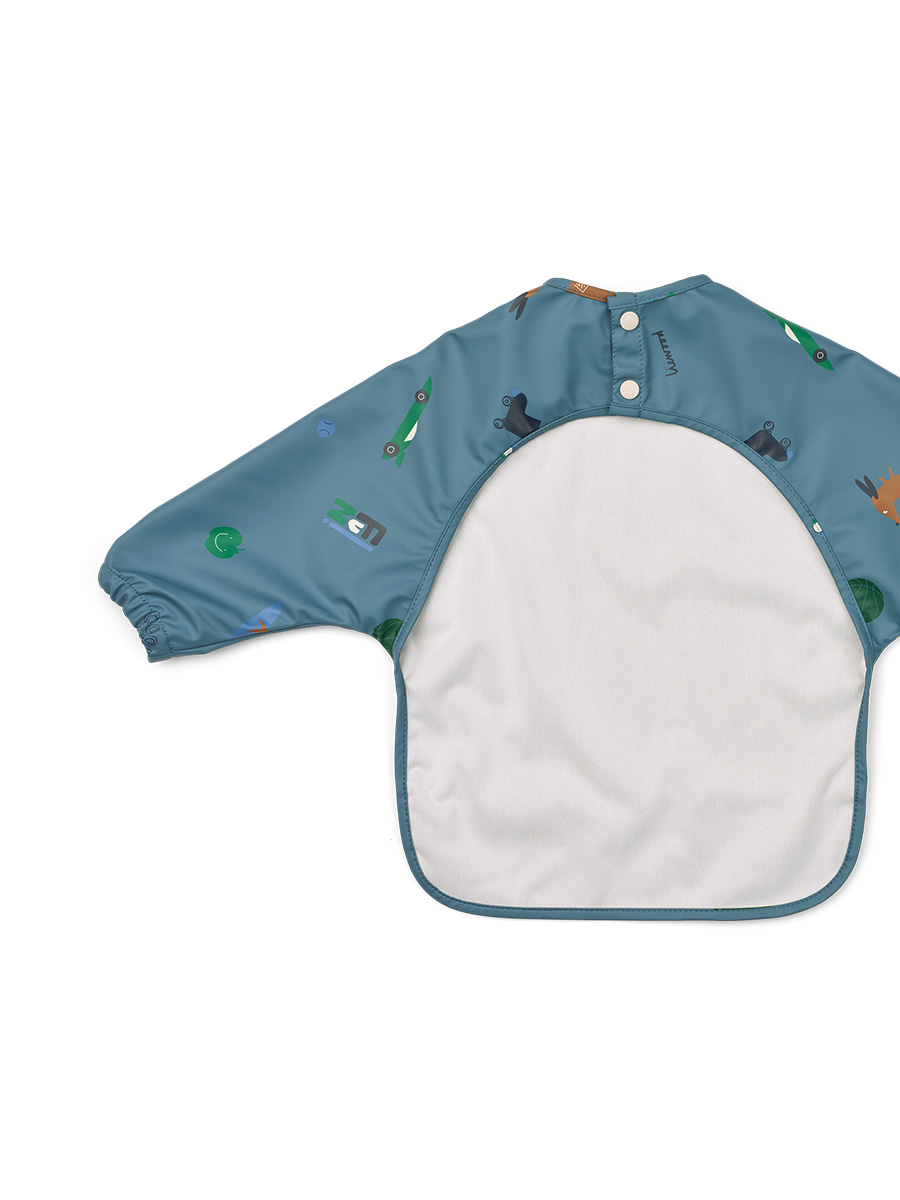 Liewood ruokalappuessu Merle on täydellinen ruokalappuessu suojaamaan pikkuisen vaatteet aterialla tai esimerkiksi maalatessa. Ruokalappuessu on vedenpitävä ja siinä on vaatteita suojaavat hihat sekä vedenpitävä, leveä tasku putoavalle ruoalle.