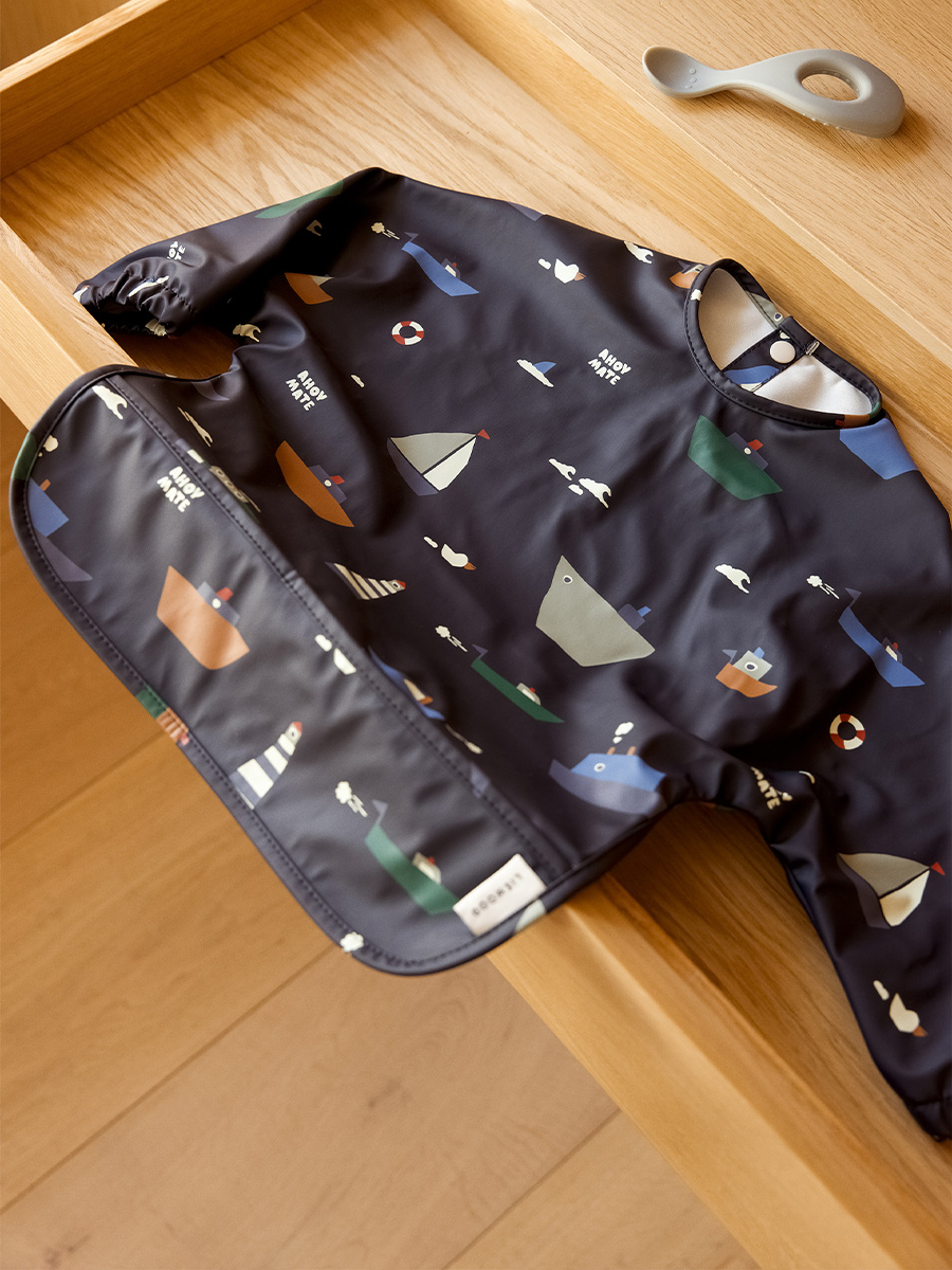 Liewood ruokalappuessu Merle on täydellinen ruokalappuessu suojaamaan pikkuisen vaatteet aterialla tai esimerkiksi maalatessa. Ruokalappuessu on vedenpitävä ja siinä on vaatteita suojaavat hihat sekä vedenpitävä, leveä tasku putoavalle ruoalle.