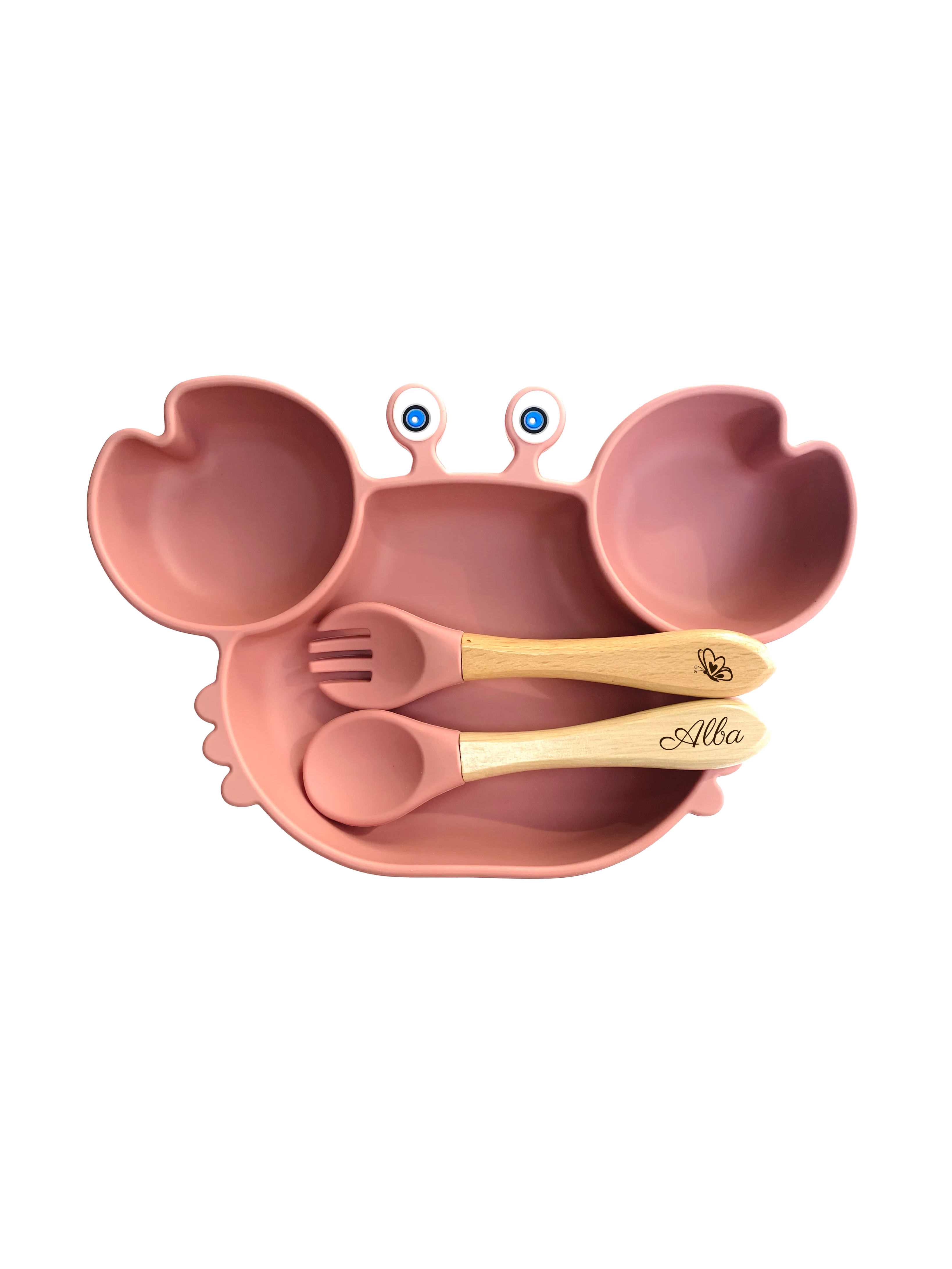 Vauvan lautanen & aterimet setti Rapu on ihana lahjaidea vauvalle tai lapselle, joka opettelee itsenäistä syömistä!