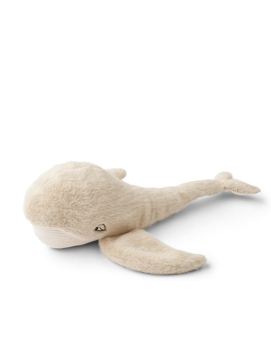 Pehmolelu Berto Whale on ylellisen pehmeä ja pörröinen valas pitkällä pyrstöllä. Berto on tehty kierrätetystä polyesteristä. Suuri, pehmeä valas on suloinen ja turvallinen ystävä lapselle ja sopii ihanasti lahjaksi ja sisustuselementiksi lastenhuoneeseen.