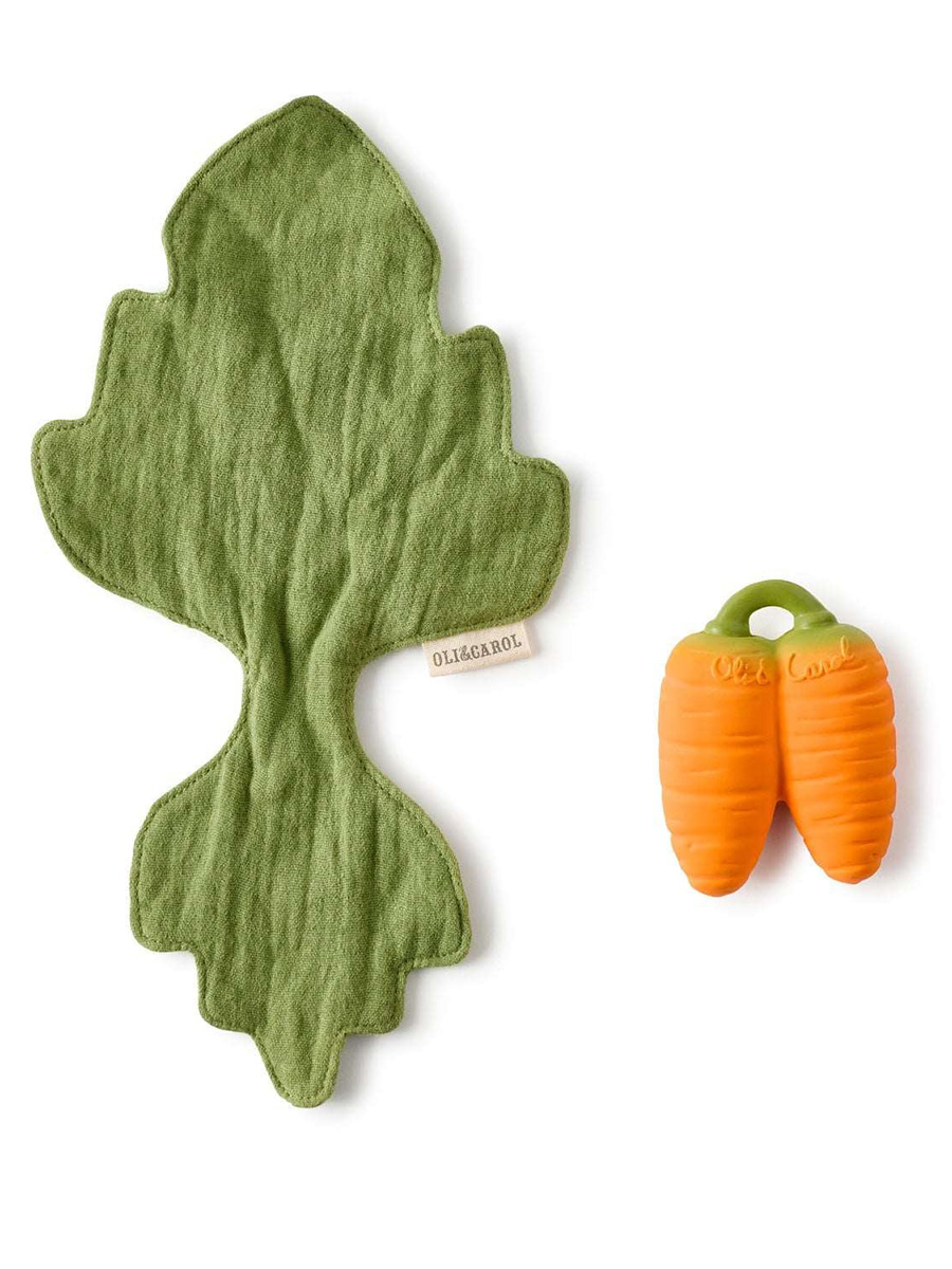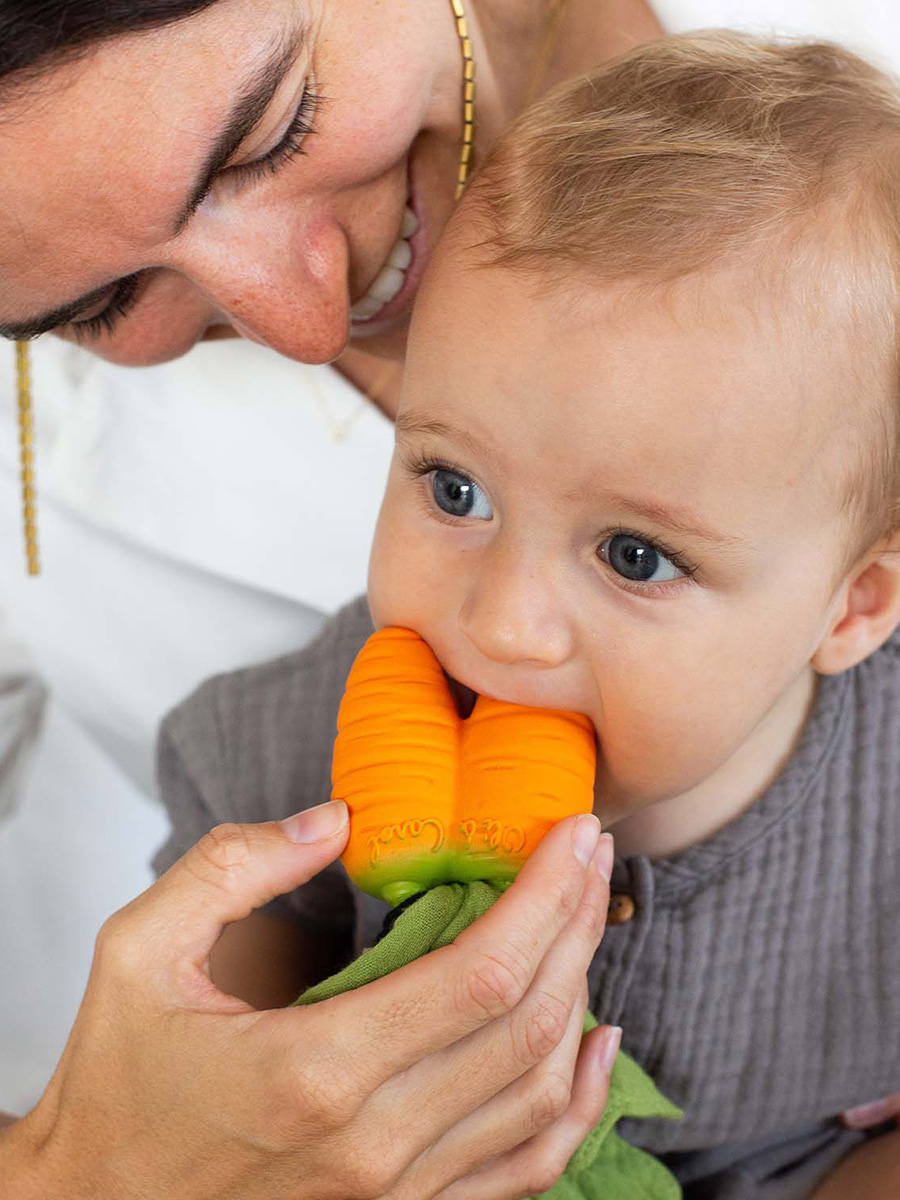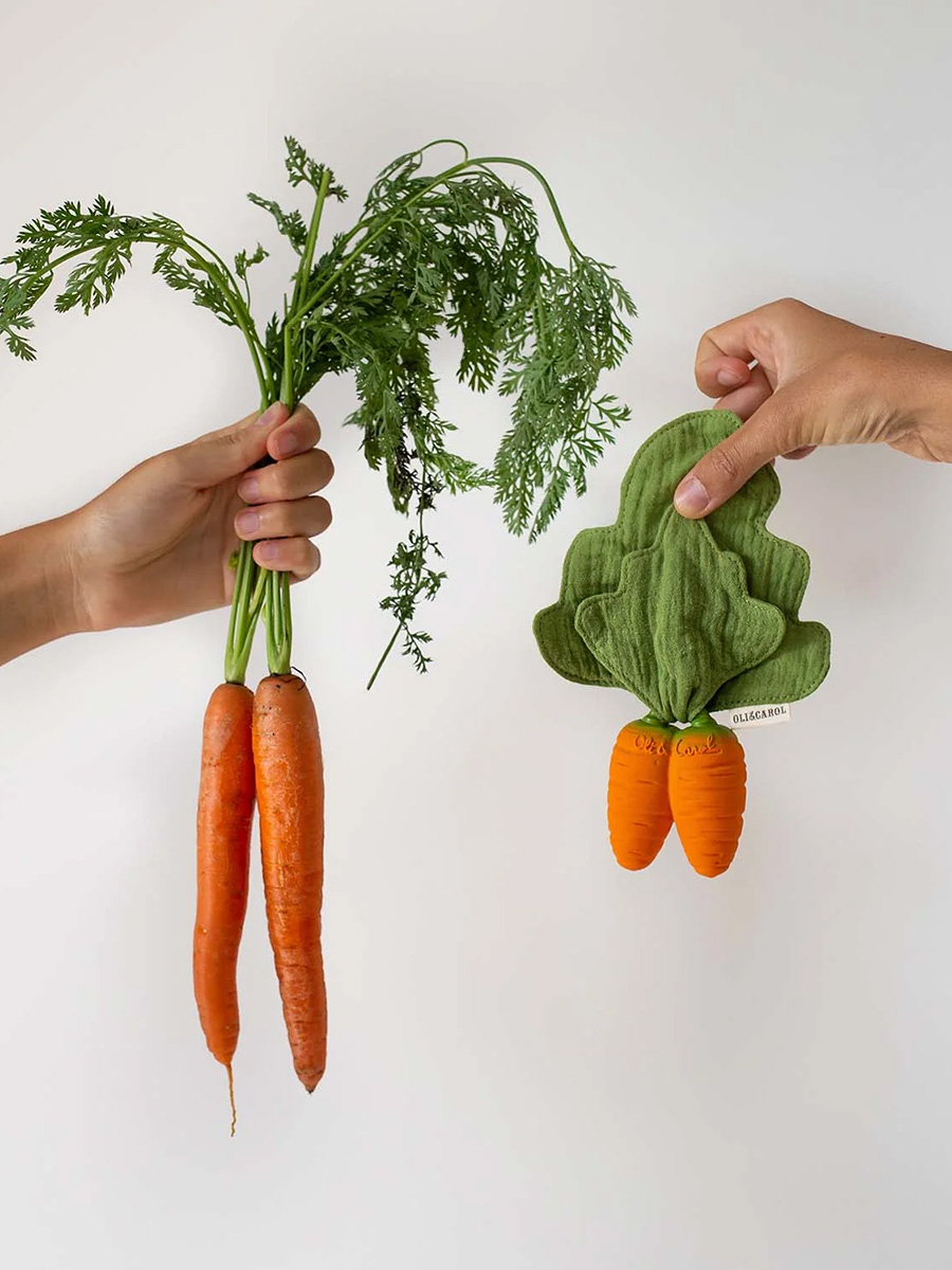 Purulelu Mini Doudou Carrot on kaksiosainen purulelu luonnonkumisesta porkkanasta sekä pehmeästä, kaksikerroksisesta musliinipuuvillaisesta liinasta. Osia voidaan käyttää ja pestä erikseen. Käytä puruleluna, kylpyleluna, aistileluna tai leikkikeittiössä!