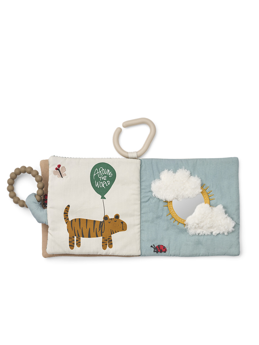 Rengasklipsillä kirjanen on helppo kiinnittää esimerkiksi mobiletelineeseen tai rattaisiin, ettei se putoa matkalla.