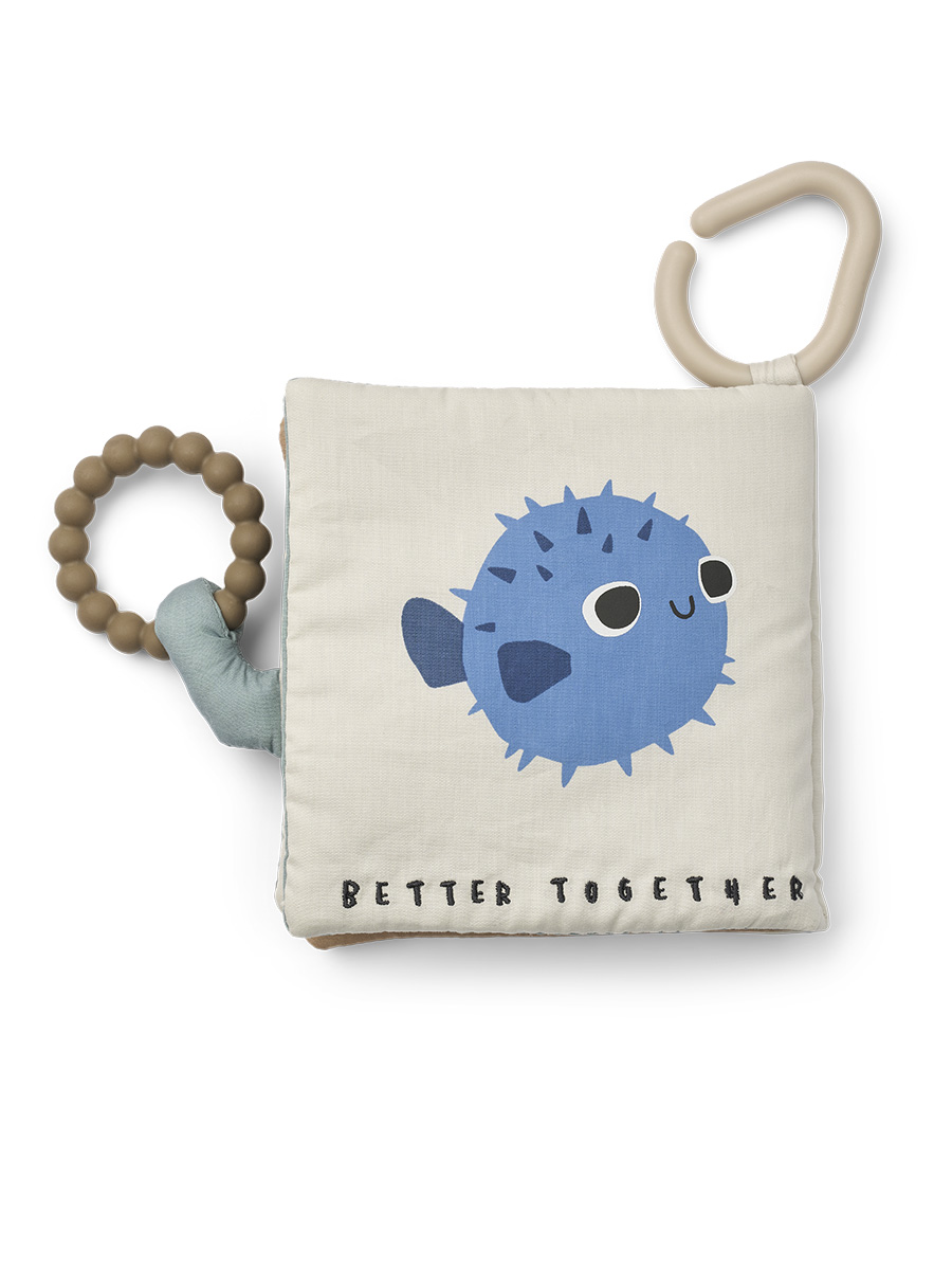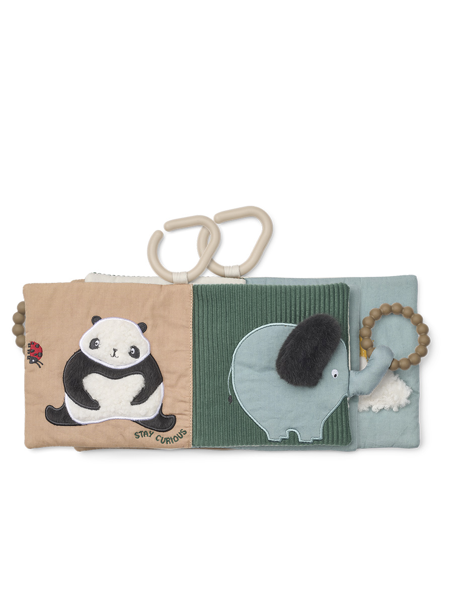 Pehmokirja Fey Classic fabrik book on samettisen pehmeä pieni kirja pupuhahmolla. Pupulla on pehmeät korvat, joihin pienten käsien on helppo tarttua. Kirjassa on silikoninen helmirengas puruleluna, peili sekä rapisevia sekä pörröisiä elementtejä vauvan katseltavaksi. Kirjanen edistää sensomotorisia leikkitaitojen kehittymistä.