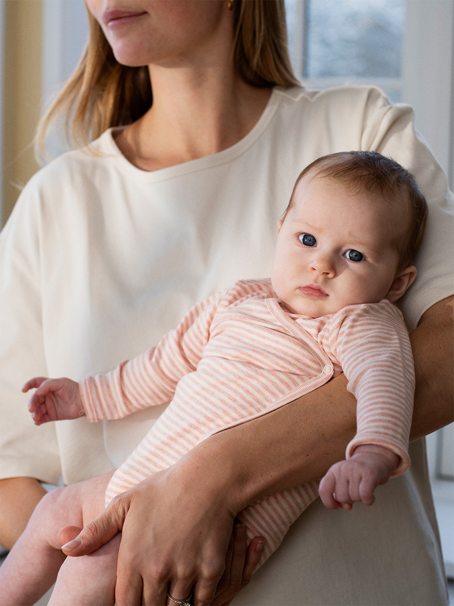 Kietaisubody pehmeää orgaanista puuvillaa. Kietaisubody istuu hyvin ja kaksinkertainen etuosa lämmittää vauvan rintaa samalla kun se on helppo pukea päälle.