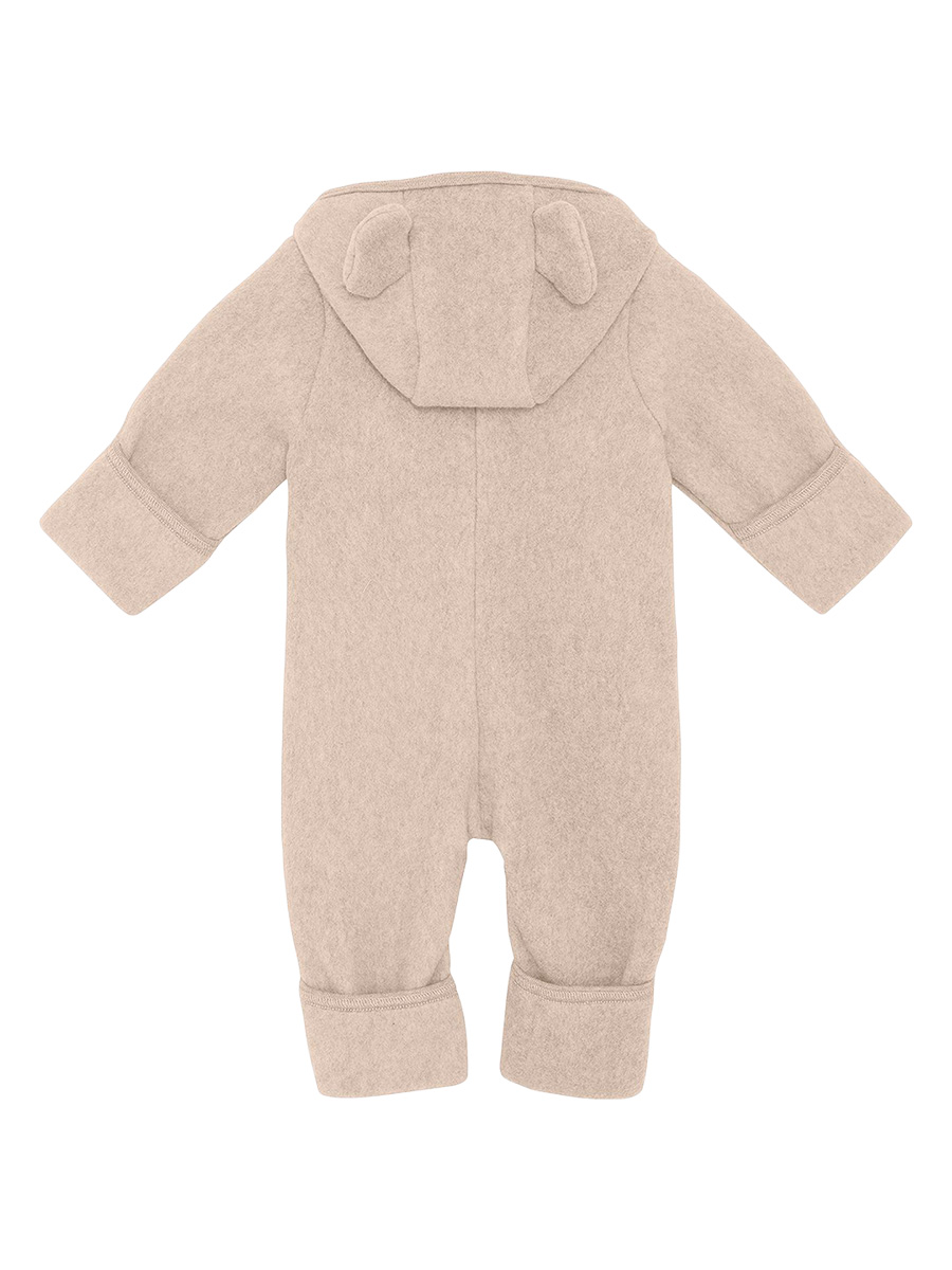Vauvan haalari puuvillafleece Pram suit ears Camel Melange on lämmin on ylellinen haalari vauvalle pehmeästä puuvilla fleecestä.