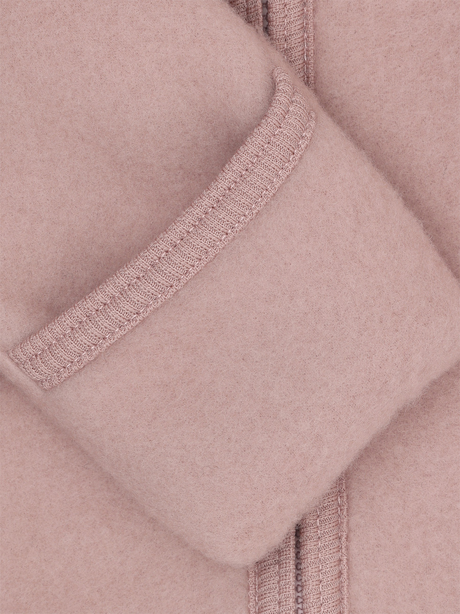 Villafleecehaalari on untuvaisen pehmeä. Haalarissa on lämmin huppu, pitkä vetoketju ja käännettävät hihan- ja lahkeensuut kokoon 80cm asti. Pehmeäksi harjattu villaneulos tuntuu miellyttävältä jopa paljasta ihoa vasten ja sopii käytettäväksi vaunuissa ja turvaistuimessa lähes ympäri vuoden.