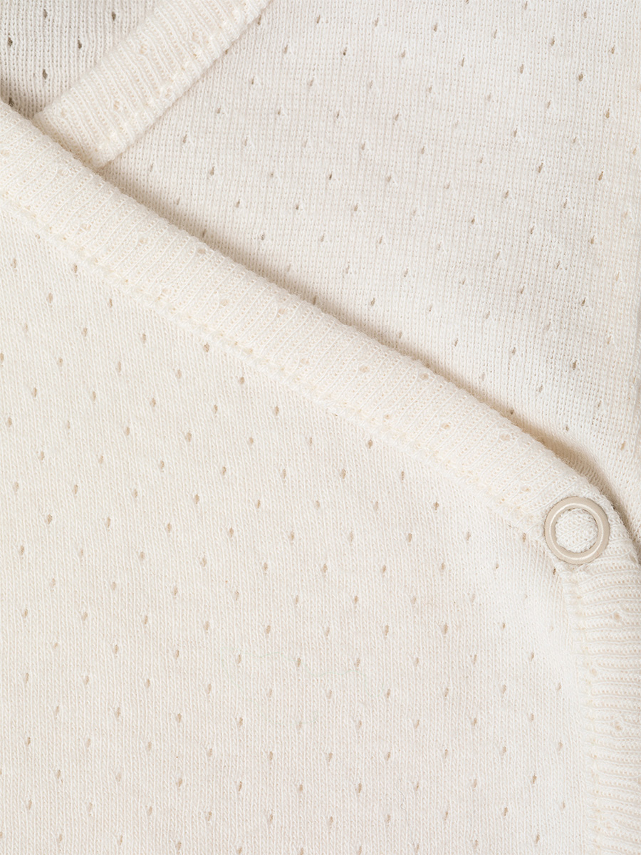 Kietaisubody pehmeää orgaanista puuvillaa. Kietaisubody istuu hyvin ja kaksinkertainen etuosa lämmittää vauvan rintaa samalla kun se on helppo pukea päälle.