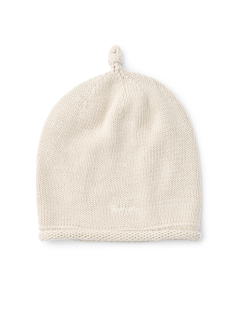 Vauvan myssy Karo baby Beanie Sandy on neulottu vauvan ensipipo luompuuvillasta. Pipon päälaella on solmukoriste ja reuna on rullattu kevyesti. Reunalla on Liewood logo. Pehmeä ja joustava pipo sopii pienelle vauvalle käytettäväksi ympäri vuoden.