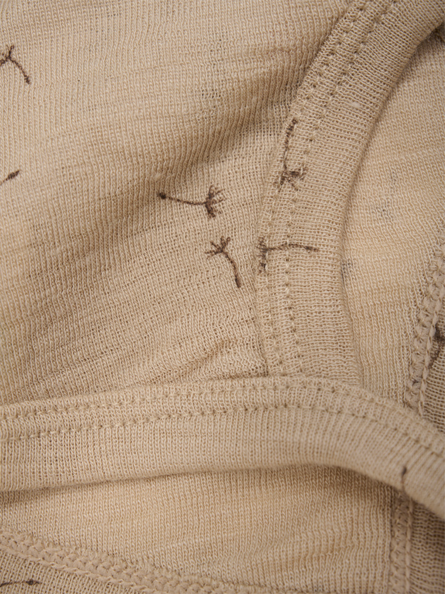 Myssyssä on erityinen leikkaus ja extra litteät saumat takaraivon sivuilla, jotta myssy ei paina vauvan päätä makuuasennossa. Leuan alle solmittavat nauhat estävät myssyä liukumasta paikaltaan.