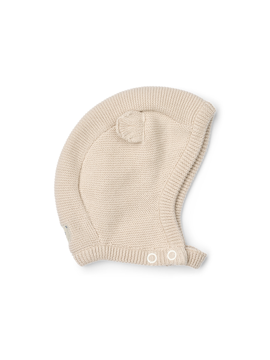 Vauvan myssy Rose baby Bonnet Sandy on vauvan myssy 100% luomupuuvillasta. Myssyssä on säädettävä nepparikiinnitys leuan alla sekä suloiset korvat. Myssyn saumat on suunniteltufiksusti pään sivuille, joten ne eivät paina vauvan päätä nukkuessa. Hengittävä ja pehmeä myssy sopii käytettäväksi ympäri vuoden niin sisällä kuin ulkona.