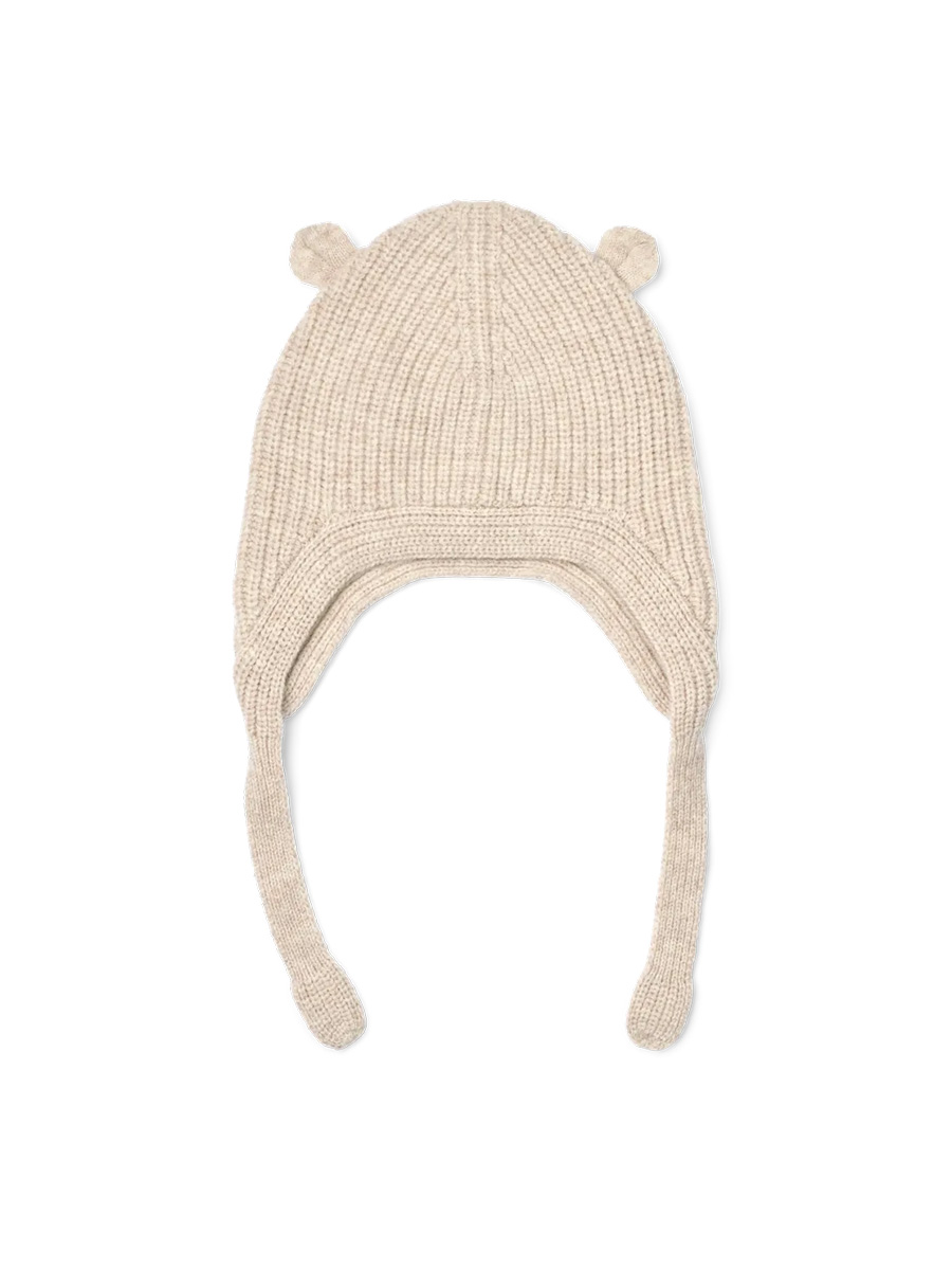 Myssyssä on nauhat, joilla sen voi sitoa istuvammaksi viileässä säässä. Päälaella on suloiset pienet korvat.