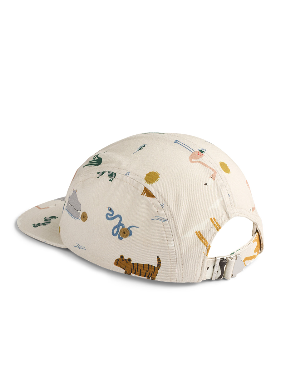 Liewood Lippalakki Rory on pehmeästä ja hengittävästä luomupuuvillasta valmistettu hattu, joka sopii moneen menoon. Jämäkkä, suora lippa suojaa kasvoja hyvin auringolta. Päänympäryksen koko on säädettävissä takana olevalla soljella ja sisäreunassa on pehmeä nauha.