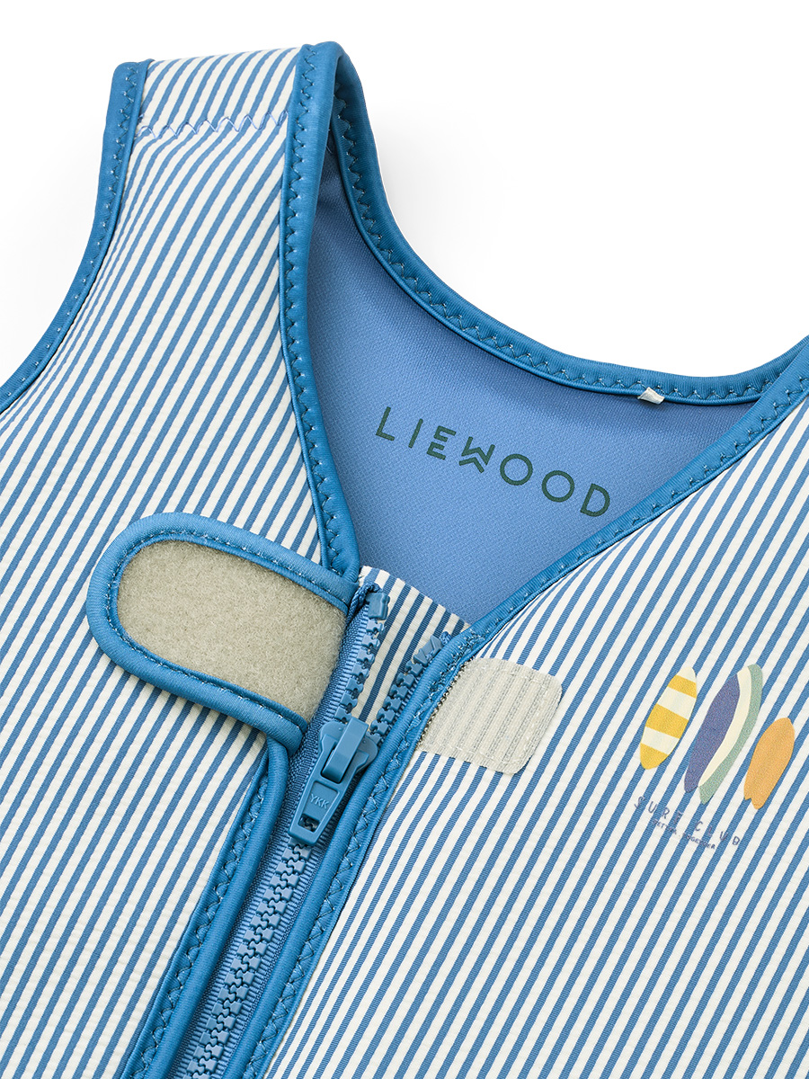 Uimaliivi Dove tuo lisäapua uimista opetteleville lapsille vesileikkeihin. Liivi on kevyttä ja juostavaa materiaalia, joka ei tunnu kömpelöltä vaan mahdollistaa lapsen helpon liikkumisen. Liivin kelluttavat toppaukset on aseteltu litteästi ja tasaisesti joka puolelle, joten niistä ei synny paksua "rengasta" lapsen ympärille.